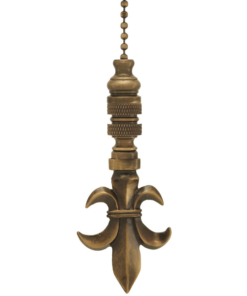 A New Fleur De Lis Fan Pull Is The Perfect Way To Complete Your New Or Favorite Ceiling Fan. Modeled After A Lily Flower, The Fleur De Lis Symbolizes : Perfection, Light, Purity And Life. Place This Fan Pull Atop Your Favorite Ceiling Fan Will Keep You Continually Aware Of Its Influence. A New Fan Pull Is The Perfect Way To Complete Your New Or Favorite Ceiling Fan. Quality Fan Pull That Is Sure To Dress Up Your Tired Ceiling Fan. All Home Concept Fan Pulls Have A Protective Lacquer Coating To Prevent Tarnishing Or Discoloration. Fan Pull Has A Beaded Metal Chain, Compatible With Most Ceiling Fans. Material: Antiqued Brass Finish With Antiqued Brass Base. Chain Measures 12 Length (And Can Be Cut Shorter), 2.75 Height And 1.5 Width. Fan Pull Measures 3.2 Height X 1.75 Width.