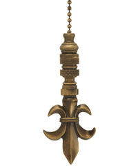 Fleur De Lis Ceiling Fan Pull, 3.2''H With 12'' Antiqued Brass Chain