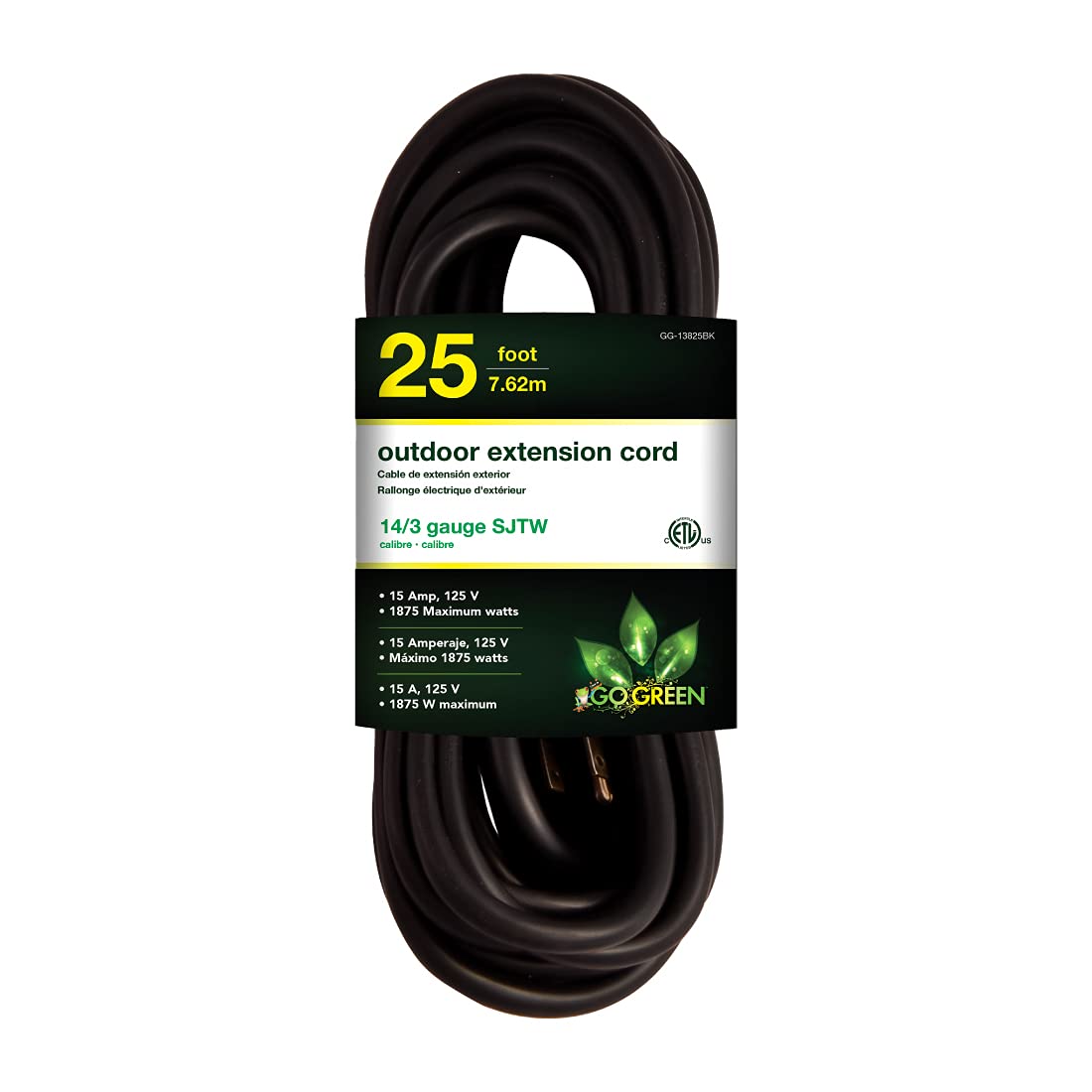 Go Green Power Inc. Gg 13825Bk 14/3 Sjtw Outdoor Extension Cord, Black, 25 Ft