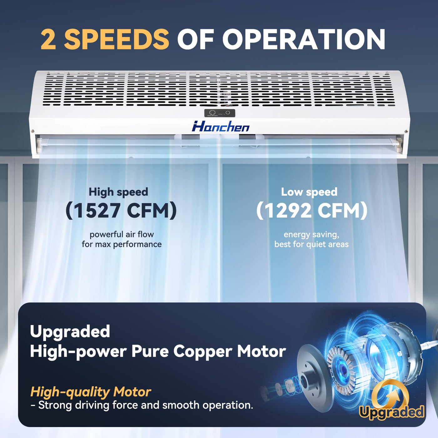 Hanchen 40 Inch Air Curtain ?2025 New Version? Magnetic Door Switch 2 Speeds 1527/1292 Cfm Uncooled&Unheated Remote Control Supe