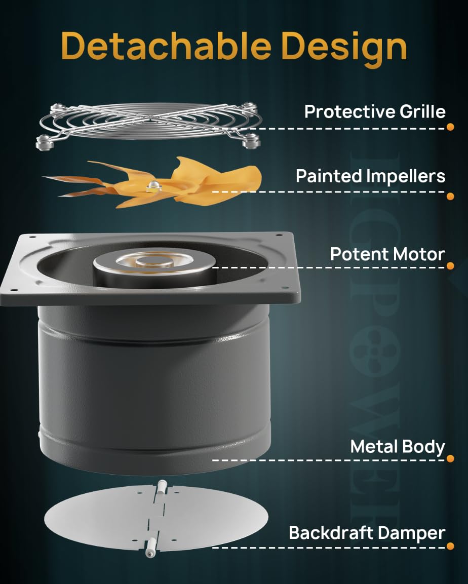 Are You In Need Of A High-Quality Exhaust Fan That Is Powerful, Energy-Efficient, And Easy To Install? Look No Further Than Our 6-Inch Metal Exhaust Fan! Constructed From Premium-Grade Metal, This Exhaust Fan Is Not Only Incredibly Durable But Also Looks Sleek And Modern. With A Powerful Motor And 6-Inch Fan Blades, It Quickly And Effectively Removes Smoke, Moisture, And Unpleasant Odors From Your Kitchen, Bathroom, Garage, Workshop, Or Any Other Space That Requires Ventilation. The 6-Inch Metal Exhaust Fan Is Designed To Be Energy-Efficient, Ensuring That It Runs Quietly And Without Costing You A Fortune On Your Energy Bills. This Fan Is Equipped With A 38W Motor, Capable Of Delivering An Impressive Airflow Rate Of 308 Cfm.&Nbsp; Installation Is Quick And Easy. This Means You Can Install It Yourself Without The Need For A Professional. You Can Easily Mount It Onto Any Wall Or Ceiling, Making It A Versatile Addition To Your Home Or Workspace.High Airflow: With An Impressive 576 Cfm, Hg Power 8 Inch Kitchen Exhaust Fan Effectively Removes Odors And Stale Air, Creating A Fresh And Comfortable Environment Superior Performance: Equipped With A High Power Motor, This Wall Mounted Exhaust Fan Maximizes Airflow While Minimizing Noise And Power Consumption. Reduce Friction And Extend The Window Exhaust Fan'S Lifespan Premium Quality Material: The Housing And Impeller Of Through Wall Exhaust Fan Is Made Of High Quality Painted Material, Ensuring Long Lasting Durability And Reliability. Plug In Exhaust Fan Features A Metal Damper That Automatically Opens And Closes, Preventing Polluted Air, Exhaust, And Odors From Flowing Back Indoors Wide Application: Designed For Quiet Ventilation In Kitchens, Shops, Attics, Bathrooms, Grow Rooms, Garages, Workshops, Ceilings, Basements, And More. Improves Airflow In Hvac Systems Easy Installation: This Wall Exhaust Fan Features A Detachable Design For Effortless Cleaning. To Easily Install On Walls Or Ceilings, Simply Use Glue Or Screws-Remember To Remove The Damper When Mounting On The Ceiling