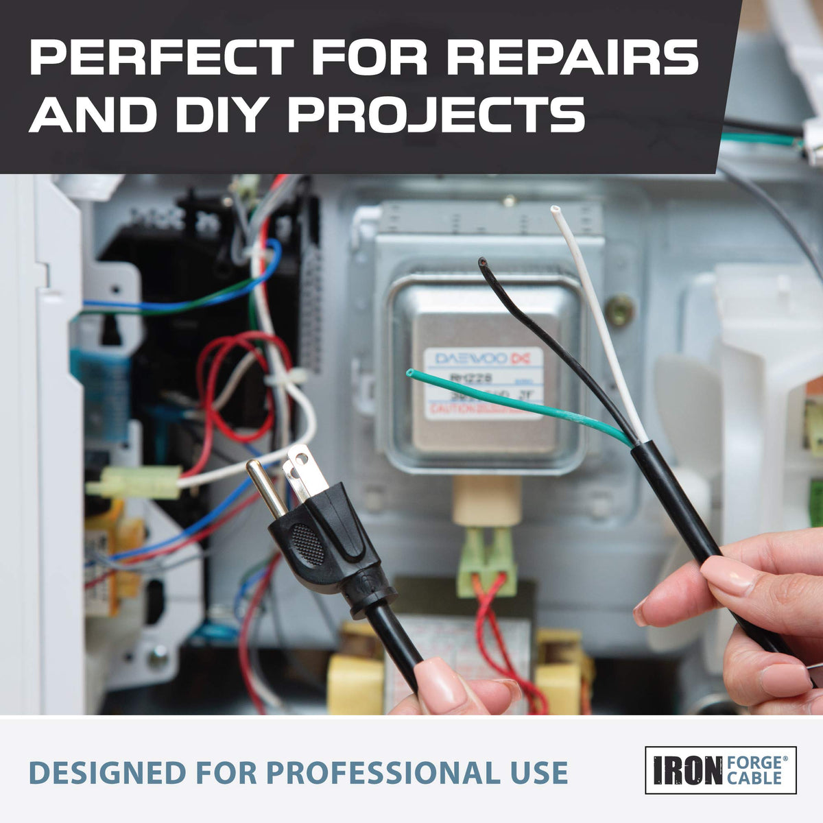 Iron Forge Cable 12 Awg Replacement Power Cord With Open End 10 Ft Black Extension Cable, 12/3 Sjt, Nema 5 15P