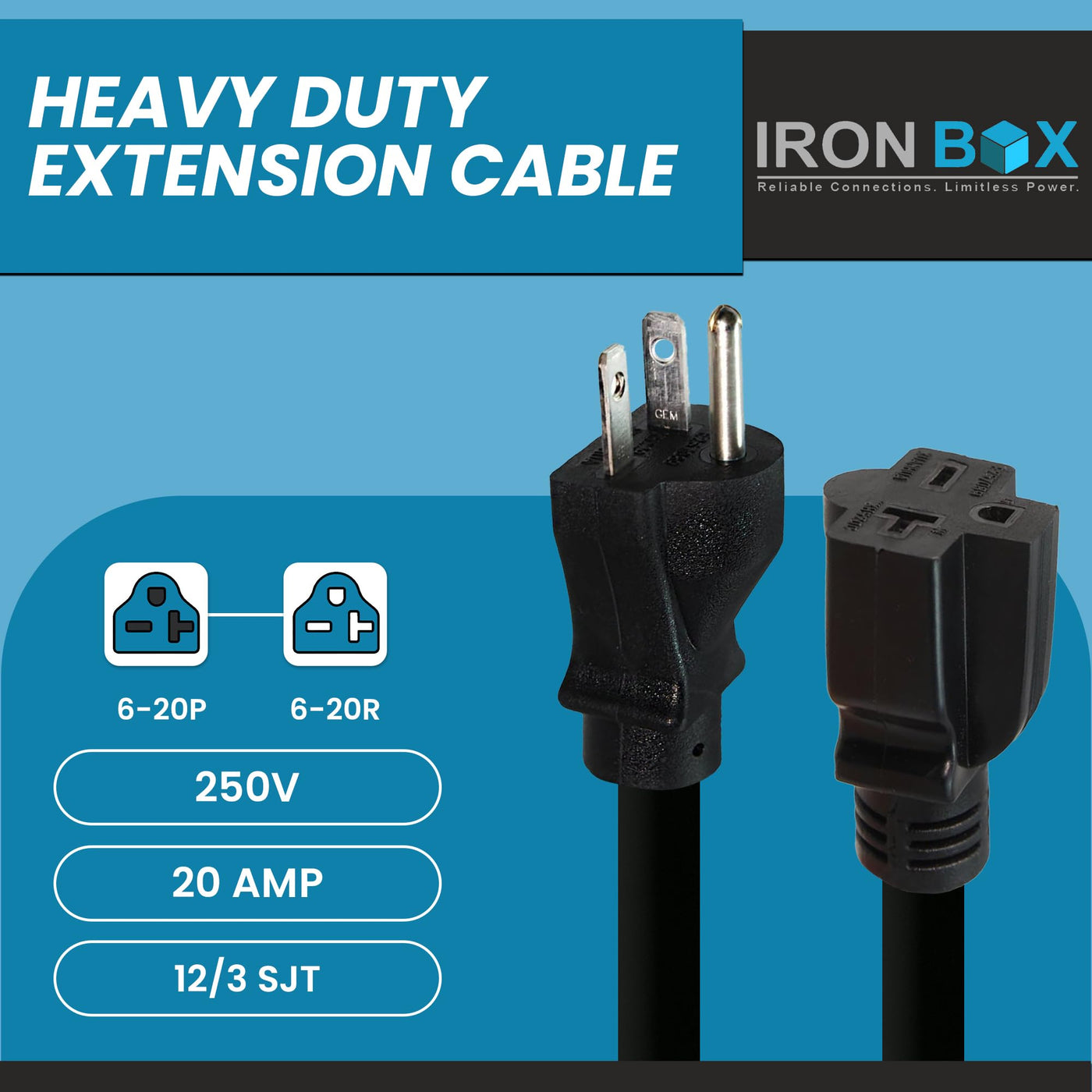 Ironbox Electric Nema 6 20 Extension Cord 12/3 Sjt Jacket, 20A, 250V Extension Cord Compatible With Any Generator Equipped