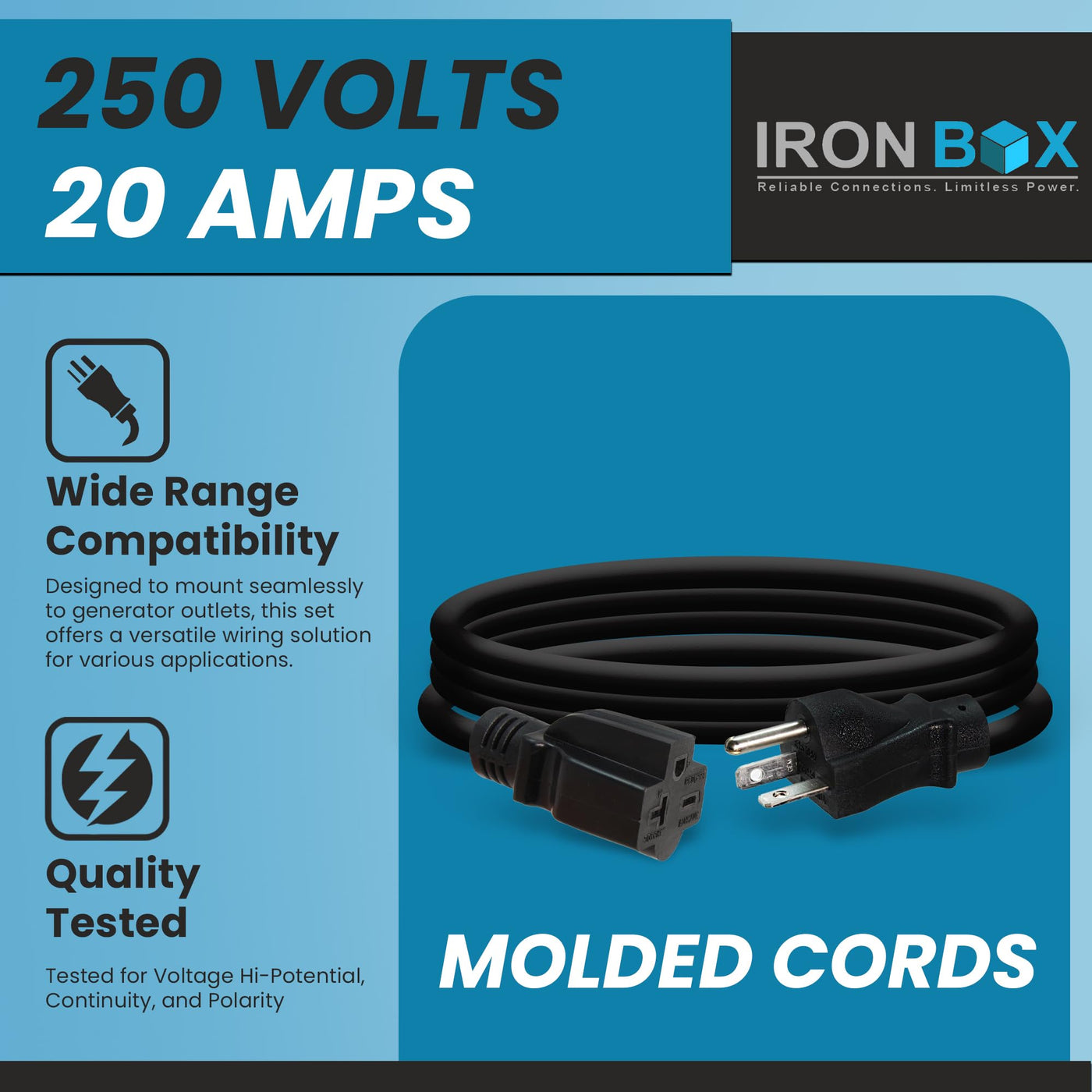 Experience Seamless Power Transfer With The Ironbox Electric Nema 6-20 Extension Cord. Built To Withstand Demanding Environments, This Heavy-Duty Cord Features A 12/3 Sjt Jacket And Is Rated For 20A, 250V. Whether You'Re On A Job Site Or Working In A Workshop, Its Compatibility With Any Generator Equipped With A 6-20 Receptacle Ensures Versatile Usage. With Superior Weatherproofing, It Delivers Reliable Power Flow In Extreme Conditions. Choose The Molded Version For Robust Construction Or Opt For The Custom-Built Version With Premium Pass And Seymour Wiring Devices For Enhanced Durability.