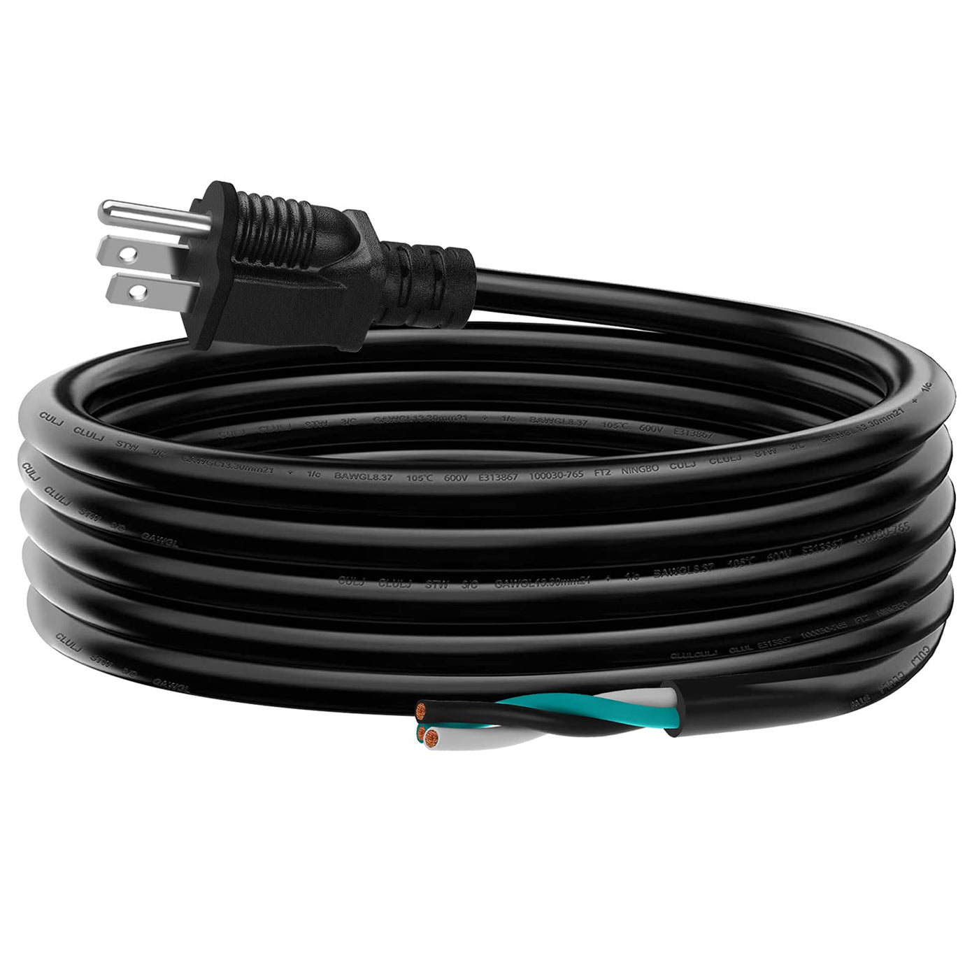 Lakczio 6 Ft 12 Awg 3 Prong Replacement Power Cord, 20 Amp 12 Gauge 3 Conductor Wire Extension Cable With Pigtail Open Wiring En