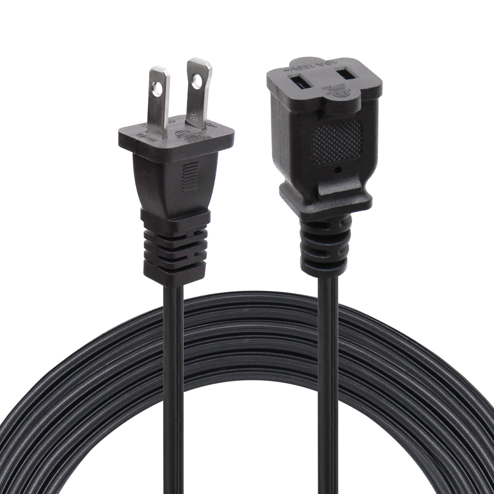 Long 2 Prong Extension Power Cord 16.5Ft, Polarized Plug Flexible Power Cable, Us Male/Female Power Cable For Nema 5 15P To Nema