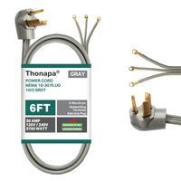 Thonapa 3 Prong Dryer Cord 6 Ft, 30 Amp Appliance Extension Cord 3 Prong 6 Foot, Nema 10 30 Plug, 10/3 Srdt Gray Dryer Power Cor