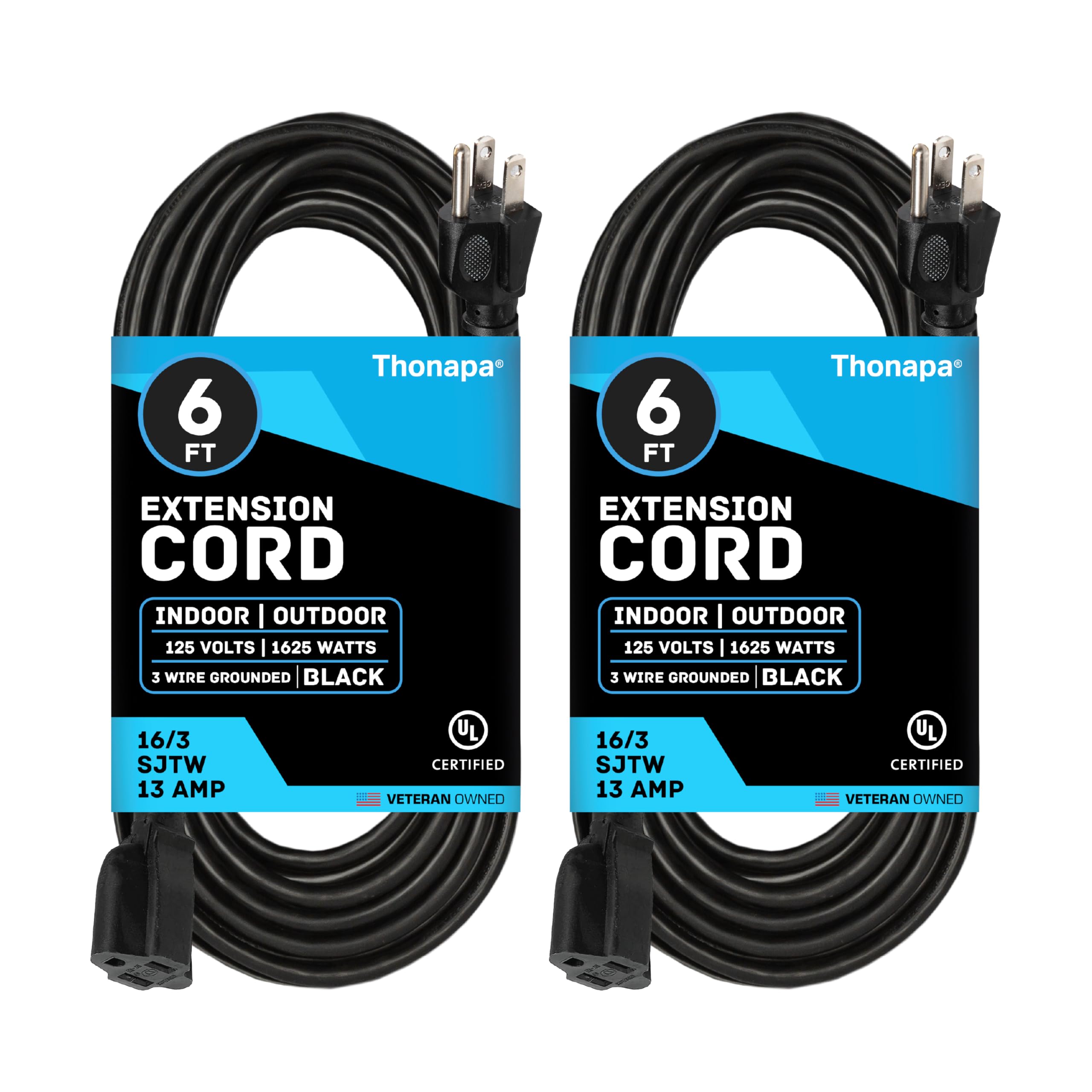 Outdoor Extension Cord: This Outside Extension Cords 6Ft Are Made With Pure Copper Wire, Great For Indoor And Outdoor Applications Like Leaf Blower, Lawnmower, Landscaping, And Is Perfect For Being A Christmas Extension Cord Either For Outdoor Or Indoor Useweatherproof: Our Weatherproof Extension Cords Are Made Heavy Dutyt And Built To Last The High Quality Vinyl Covering Protects Power Cords From Water, Snow, Abrasion And Sunlightcorrosion Resistant Nickel Blades: The Blades Of This Power Cable Are Nickel-Coated & Reinforced To Improve Both Durability & Longevity These Contractor Extension Cords Feature Lessen Cord Strain, Making Them Slip Resistantul Certified: 2 Pack, Sjtw, 16 Gauge16 Awg Electric Cord For Outside, 3 Prong Grounded Plug, 6 Foot, 13 Amp, 125 Volt, And 1625 Watt Withstand Extreme Temperatures From -40 To +140Afcommitment To Quality: Celebrate The Holidays With Christmas Lights And Decorations Thonapa Is A Us Veteran Owned Company, And We Stand Behind Our Outdoor Extension Cords 100% If Anything Goes Wrong With Your Cords, Simply Contact Us, And We Will Provide A Replacement