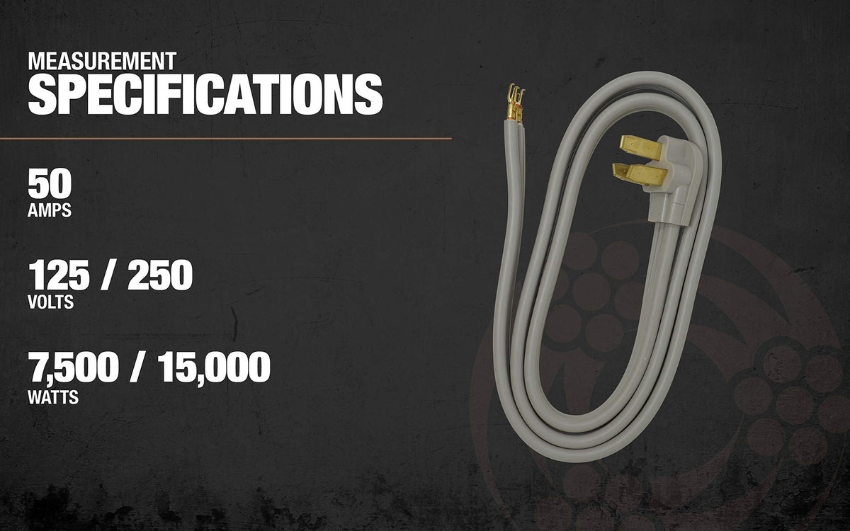 Woods 90168809 50 Amp 3 Wire Range Power Cord; 6 Foot; 6'; Yellow
