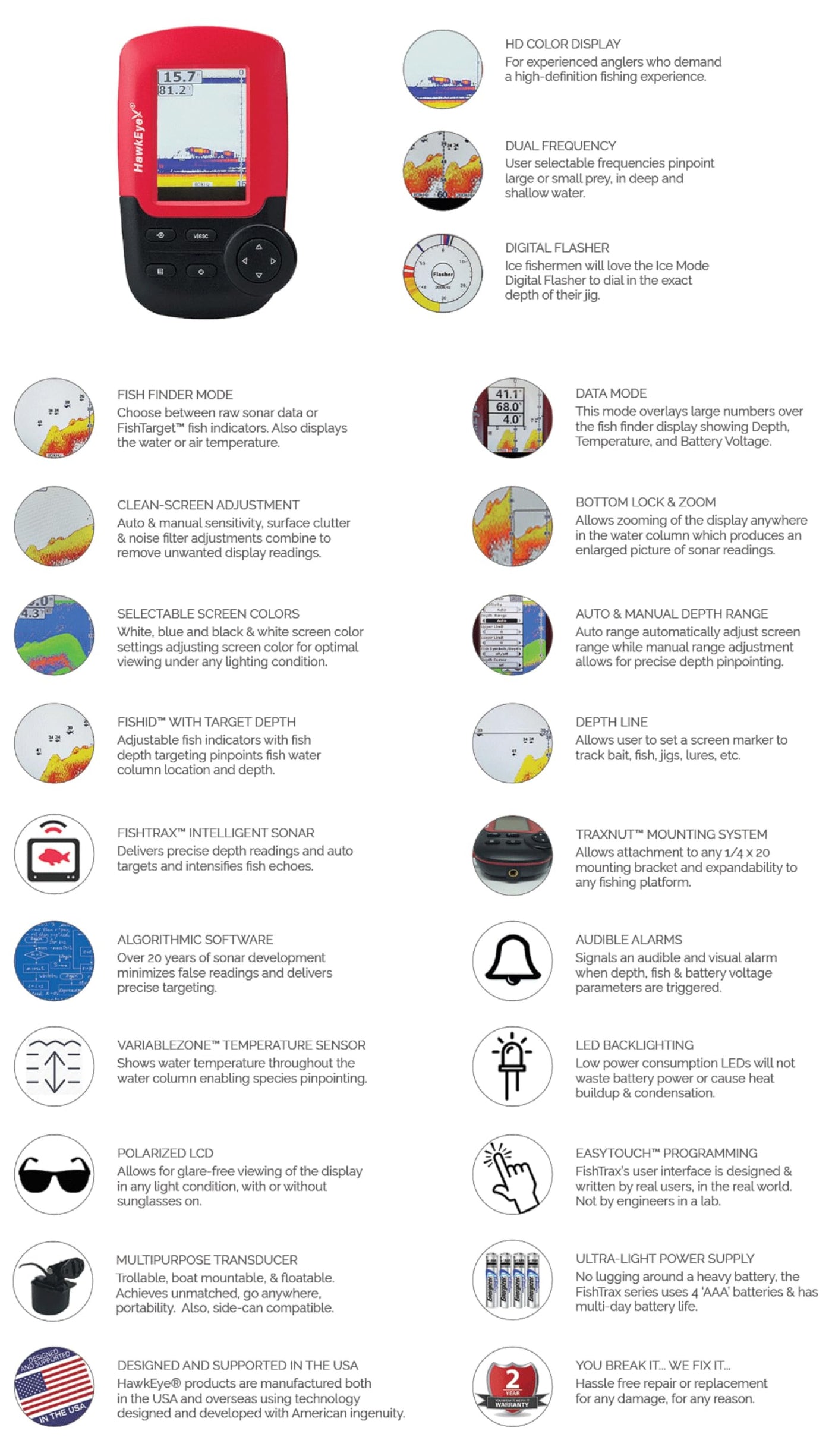 Hawkeye Fishtrax 1C-K | Paddlesport Fish Finder, Red, (Ft1Pxc-K),WBHDWB085S8M349