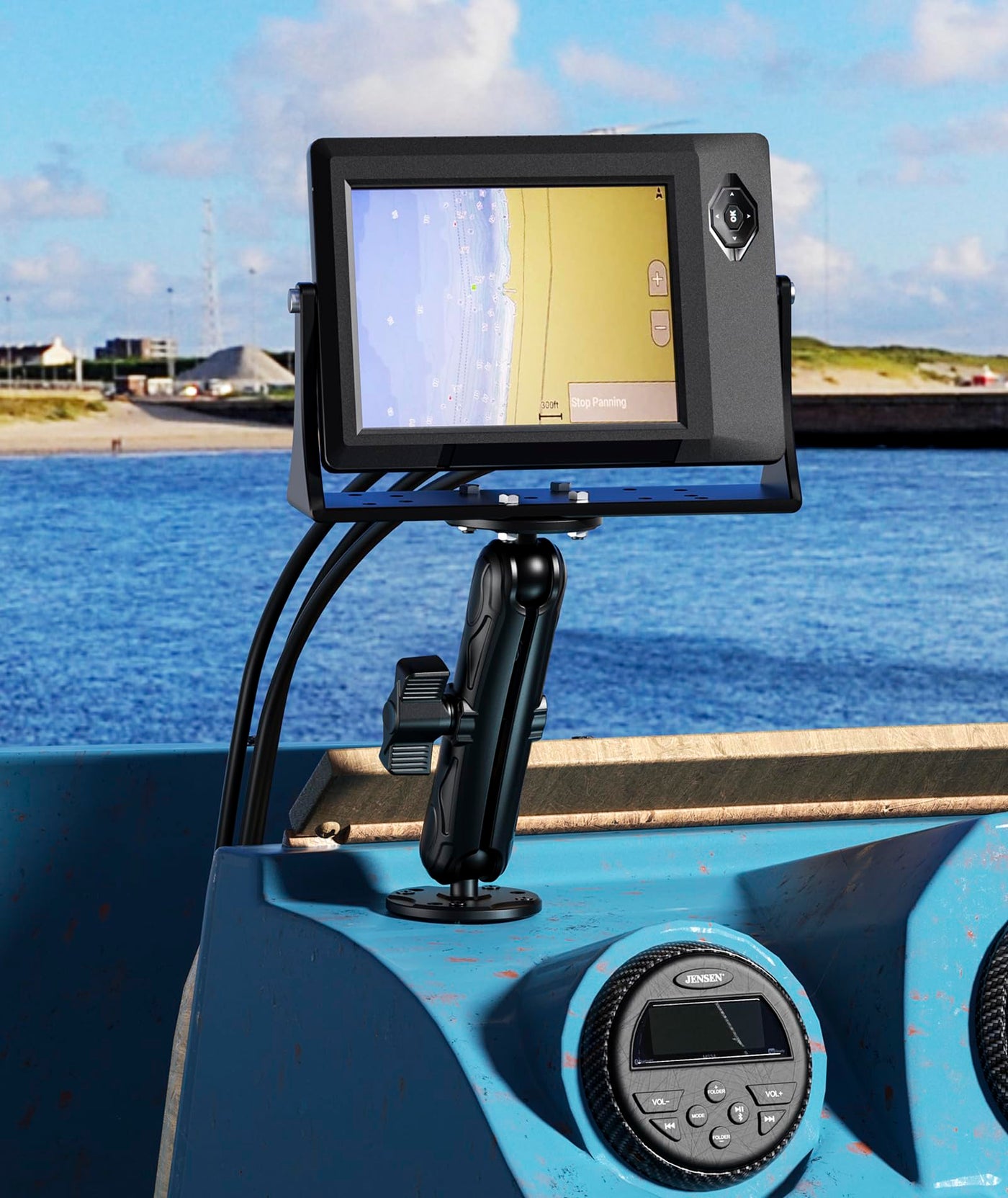 Vazeswin Aluminum Alloy Electronic Device Mount With 1'' Ball Round Plates, 5.9'' Long Arm Fish Finder Mount Tablet Holder, B Si