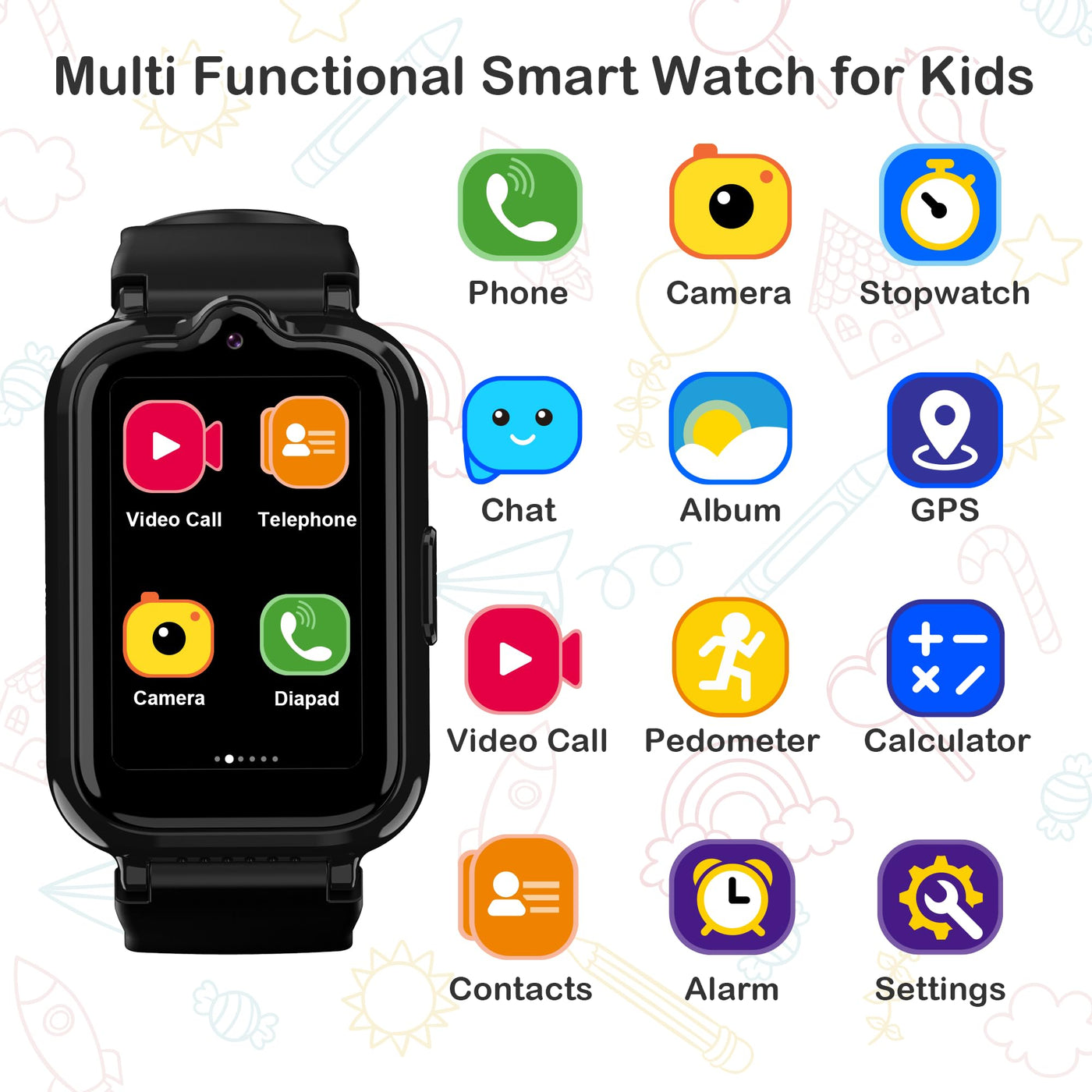 4G Kids Smart Watch Boys With Gps Tracker, Kids Cell Phone Watch With Video & Voice Calling Texting Alarm Sos Calculator Pedomet