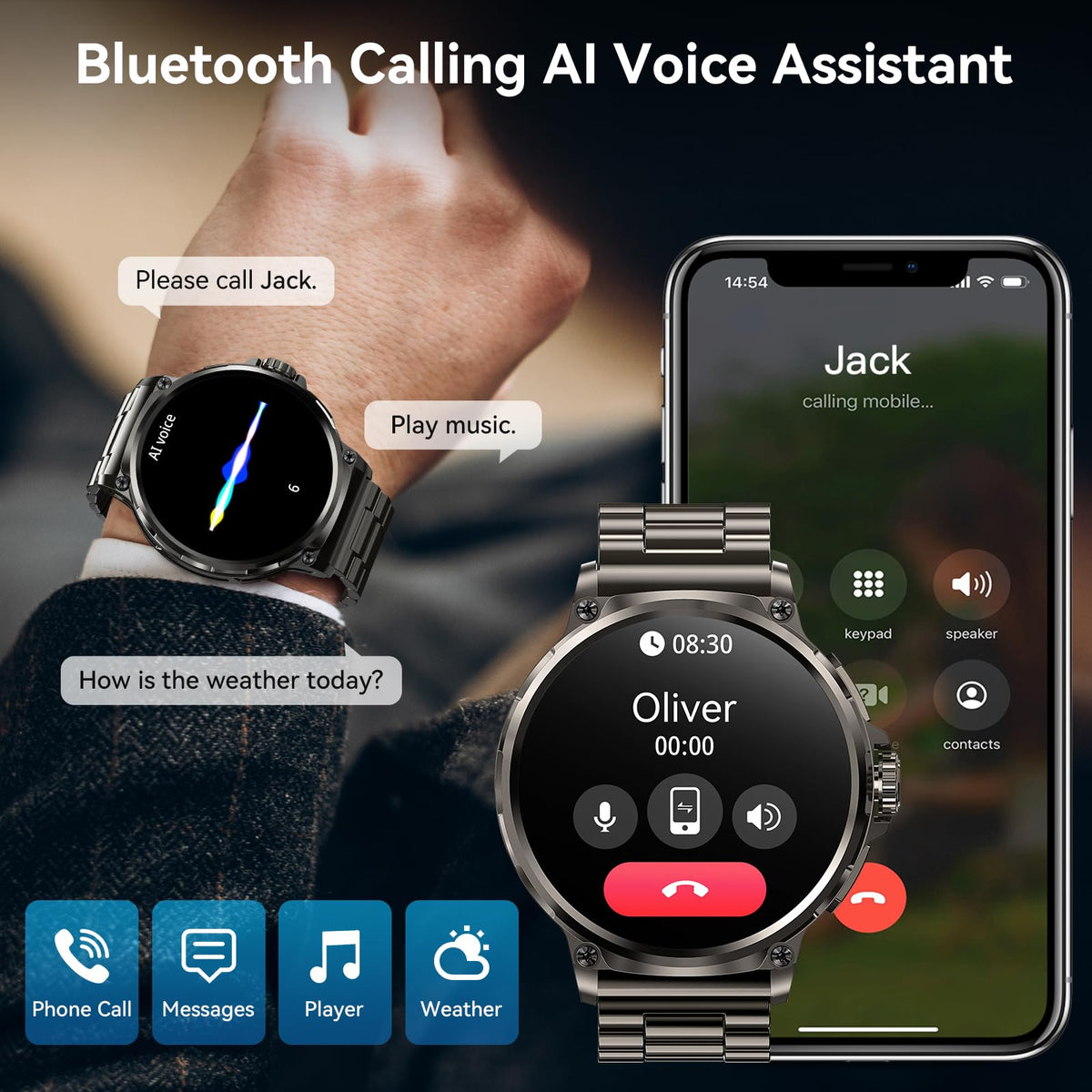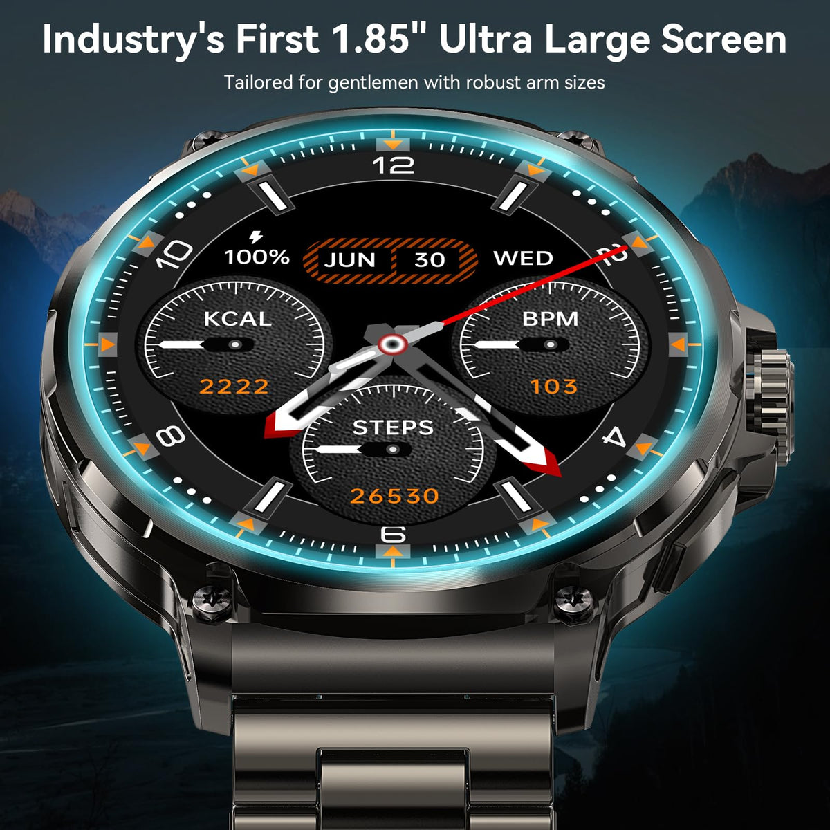 Amaztim Smart Watch For Men,1.85 '' Hd Oversized Screen,100 Days Extra-Long Battery,Rugged Military Bluetooth Call(Answer/Dial Calls) Compatible Iphone & Android,Ai Voice Assistant/Heart Rate Monitor