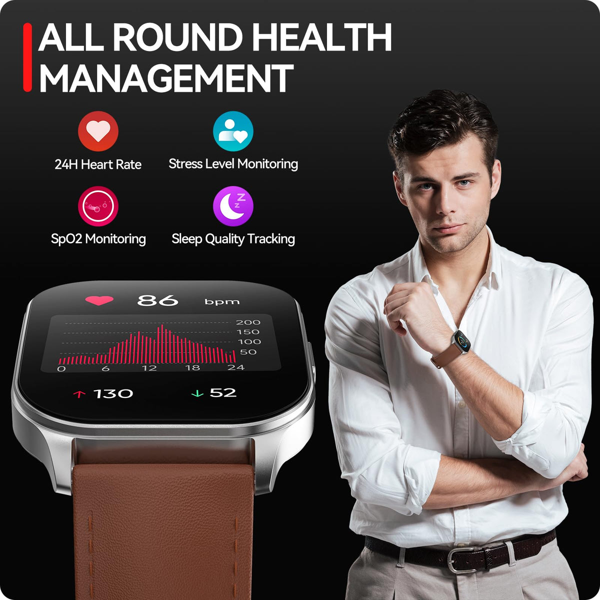 Anyloop Smart Watch For Men Women, 1.96'' Amoled Display, Fitness Watch(Answer/Make Call) With Heart Rate Sleep Spo2 Monitor,Ip6