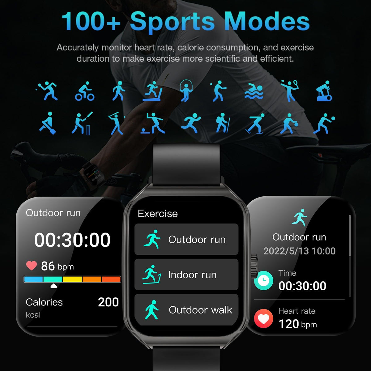 Aolon Curve Smart Watch For Men Women, 1.83'' Hd Smartwatch With Black Aluminium Case Black Band (Answer/Make Call), 120+ Sport