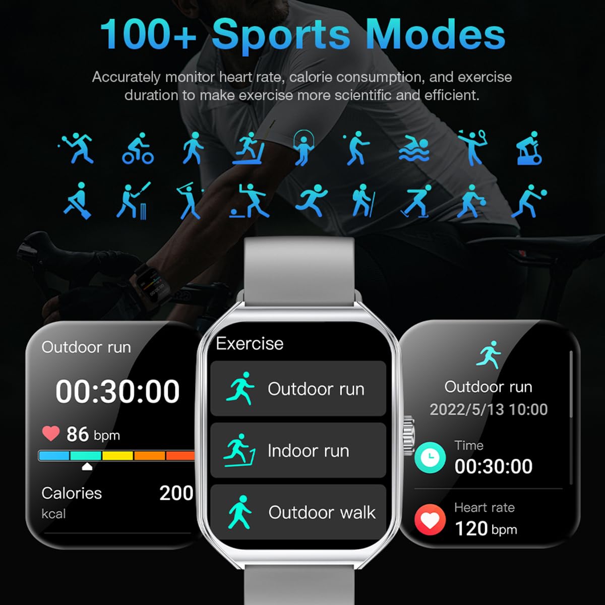 Aolon Curve Smart Watch For Men Women, 1.83 '' Hd Smartwatch With Silver Aluminium Case Silver Band (Answer/Make Call), 120+ Spo