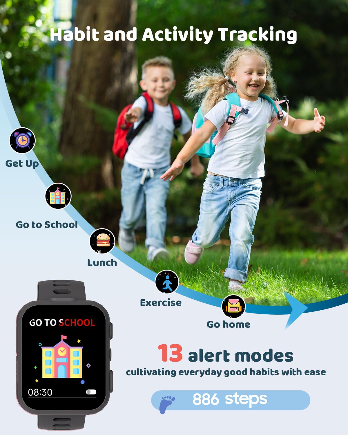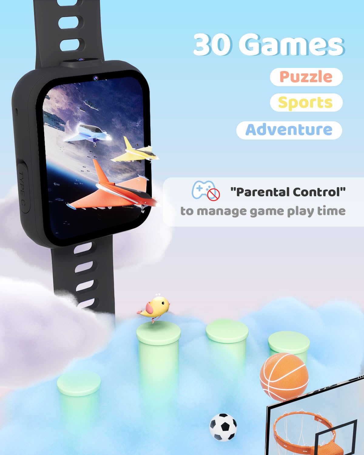 Biggerfive Smart Watch For Kids With Dual Cameras, 30 Puzzle Games, Video & Music Player, Audiobooks, Flashlight, Pedometer, Calculator, Educational Toys Birthday Gifts For Boys Girls Ages 4-10 Black