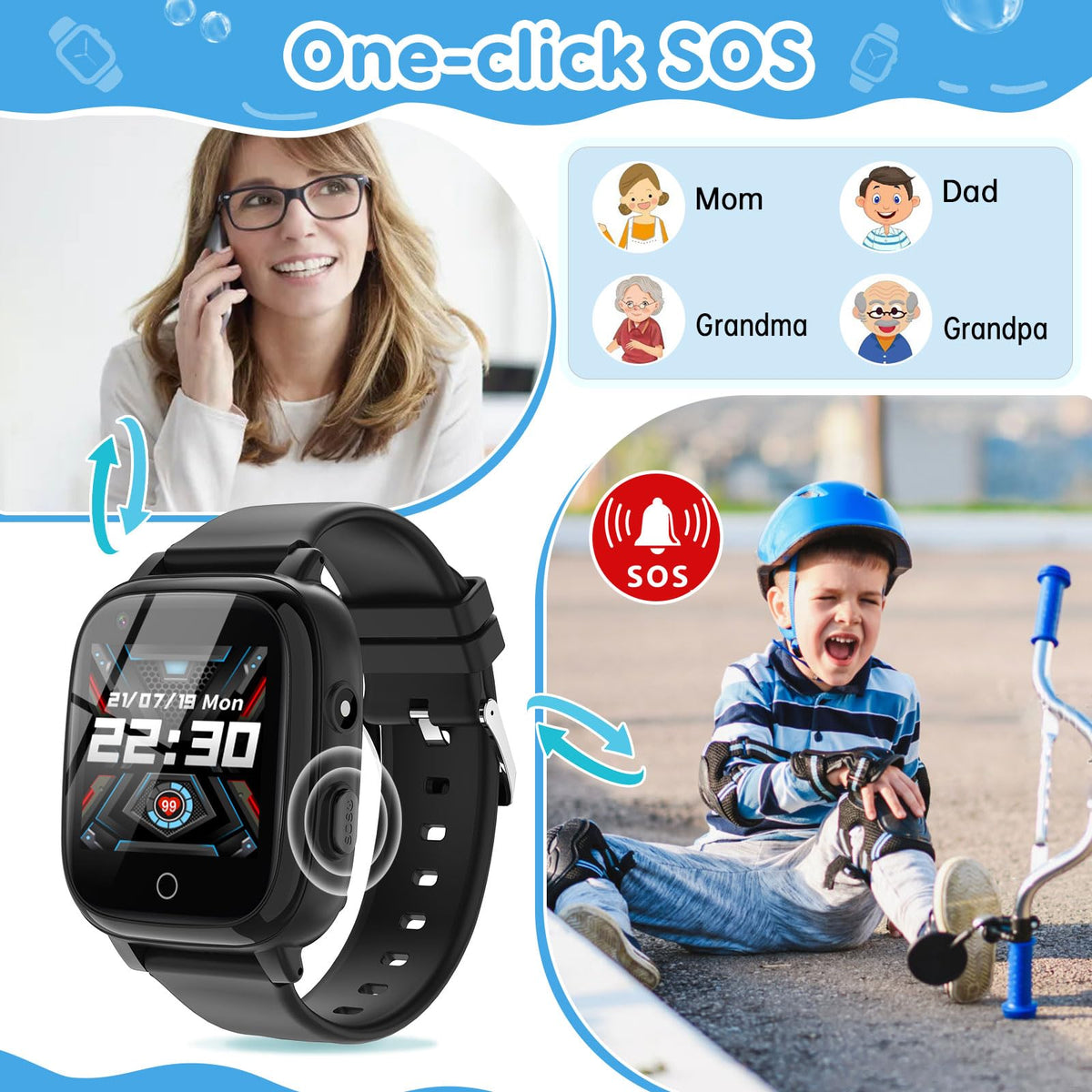 ?User-Friendly Experience?Our Package Includes A 4G Sim Card That Is Compatible With This Kids Smartwatch, Ensuring A Seamless Setup Process. Once You Receive The Watch, You Just Need To Activate The Sim Card, Allowing An Easy And Straightforward Calling Function. | ?Sos & Phone Watch?Pressing The Sos Button For 3-5 Seconds Automatically Calls 3 Sos Numbers In 2 Rounds And Sends Messages To Guardians.An Invaluable Aid For Children In Emergency Scenarios, Assuring Prompt Assistance When Needed The Most. | ?Class Mode & Gps?Through Our Dedicated Setracker2 App, Parents Can Define 'In-Class' Hours, Limiting The Watch'S Use To Only Time-Checking, Thus Eliminating Distractions. Plus, Our App Offers Real-Time Location Tracking, Enabling Parents To Stay Updated About Their Child'S Location Anytime, Anywhere. | ?Bump-To-Friend?The Kids Watch Enables A Unique 'Bump-To-Friend' Feature, Allowing Kids To Make New Friends By Directly Interacting With Same Cjc Watches, Including Exchanging Voice Messages, Emoticons, Pictures, And Even Video Calls. | ?Smart Watch For Kids?Our Kids' Smartwatch Comes Equipped Chat, Bump-To-Friend, Calling, Sos, Video, Music Player, Photography, Alarm, Pedometer, Sms, Magic Camera, Registration Code, Album, Speed Learning, Class Schedule, Flashlight, Picture Recognition, Stopwatch, Calculator, Calendar, Face Recognition, Recording, Wallpaper, Multilingual, Application Store. | ?Great Gift For Kids?Our Kids Watches Is Designed 1.54 Inch Ips Hd Touch Screen. Perfect Birthday, Christmas, Festival, And Holiday Gifts For Boys And Girls Aged 4-12. We Provide Warranty And Lifetime Friendly Customer Service. If You Have Any Questions, Please Feel Free To Contact Us, We Will Reply Within 24 Hours. | ?Sim Card?The Sim Card Included With Our Watch Is Specifically Designed To Match Our Device, Ensuring Optimal Performance And Compatibility Without Any Frequency Band Issues. | Note: Our Kids Watch Features Battery Sleep Protection. When Turning On The Watch For The First Time, It Requires A Long Press Of 15~30 Seconds. When Using Gps, It Is Necessary To Insert A Sim Card Into The Watch And Connect It To The Network.