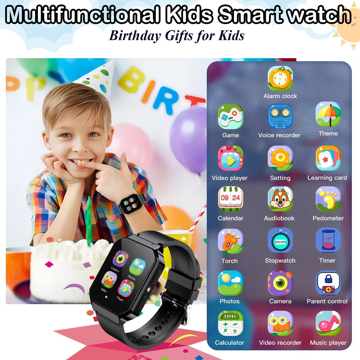 Derui Smart Watch For Kids 3 12 Years Boys Girls, 26 Puzzle Games, Smartwatch With Camera, Pedometer, Stopwatch, Video Voice Music Player Calendar Alarm Clock Learn Card For Children Gifts (Black)