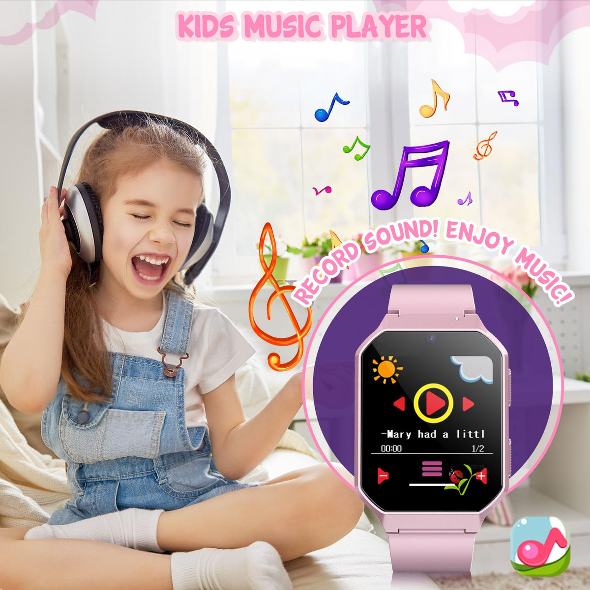 Derui Smart Watch For Kids Features: * 26Puzzle Games * Hd Cameras, Magic Camera * Video Recorder Player , Mp3 Music Player, Voice Recorder * Calculator, Alarm Clock, Calendar, Stopwatch, Timer < * Learn Card, Audiobook * 12/24 Hours Time Display,Volume Control