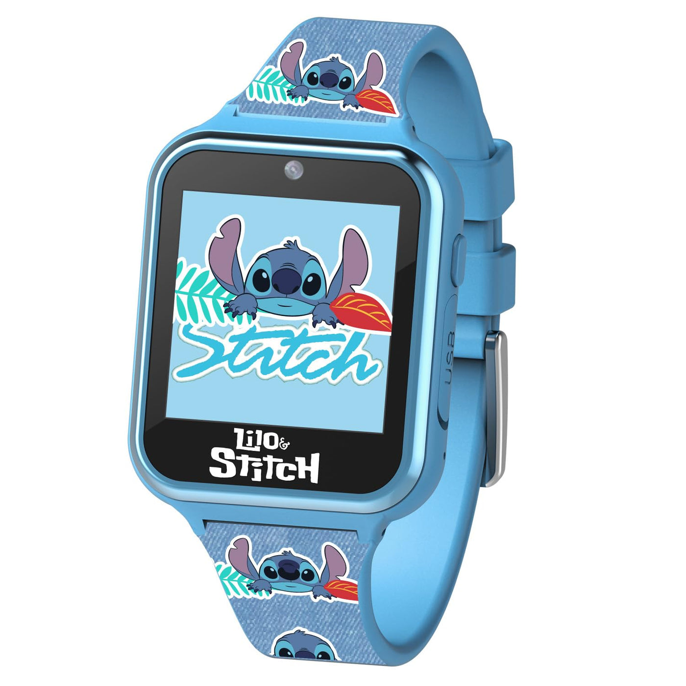 Disney Stitch Kids Smart Watch With 10 Customizable Faces, Camera, Voice Recorder, Calculator, And Step Counter � Touchscreen Interactive Watch For Kids � Blue Silicone Strap