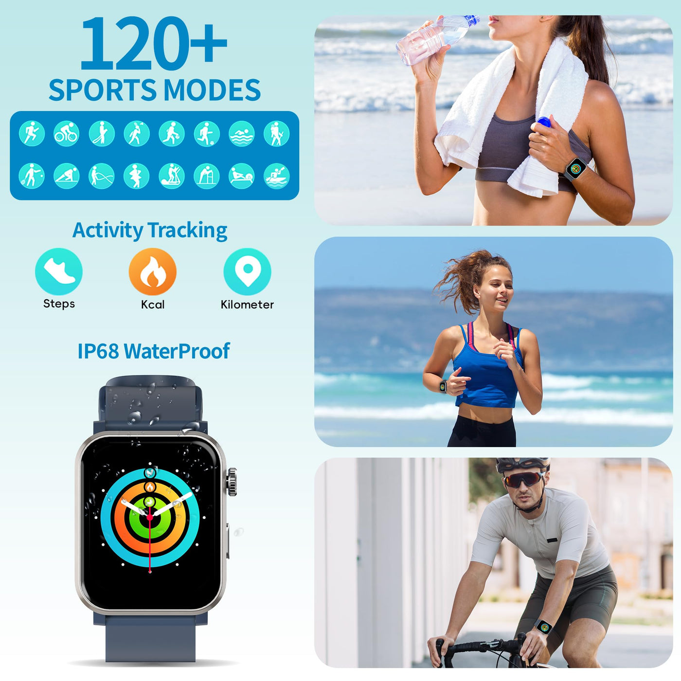 Ezon Smart Watch For Men Women (Answer/Make Call), 1.83 '' Hd Smartwatch Fitness Tracker Watch With Heart Rate/Sleep/Stress/Spo2 Monitor,120+ Sports Modes, Activity Tracker For Android Ios