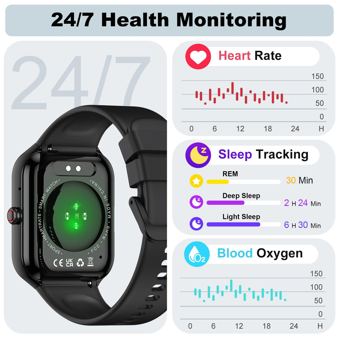 Fempoin Smart Watch For Men Women, 1.96 '' Smartwatch (Answer/Make Call), Ip68 Waterproof Fitness Tracker, 100+ Sport Modes, Hea