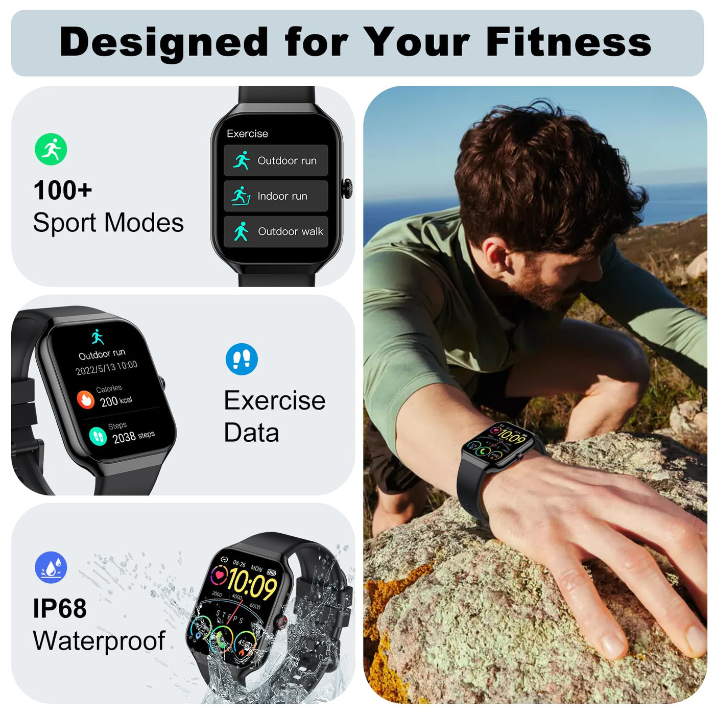 Smart Watch, 1.96 '' Hd Smartwatch For Men Women Touch Screen Answer/Make Call, 100+ Sport Fitness Tracker Ip68 Waterproof, Activity Tracker With Heart Rate Spo2/Sleep Monitor/Pedometer For Android Ios