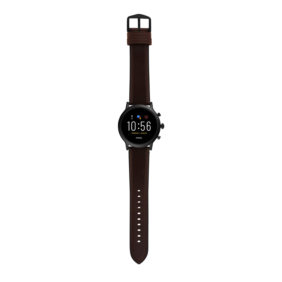 Fossil 44Mm Gen 5 Carlyle Stainless Steel And Leather Touchscreen Smart Watch, Color: Black, Brown (Model: Ftw4026)