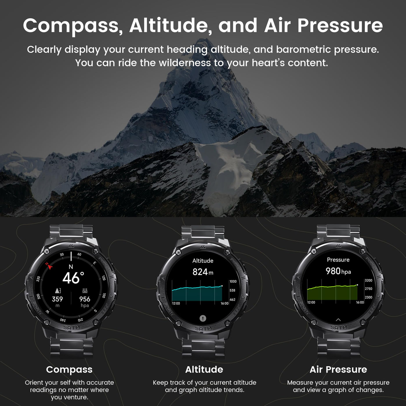 Hidamel Smart Watches For Men Gps, Pressure,Altitude,Compass, 480Mah Extra Large Battery, 50M Waterproof, Full Metal Body Rugged