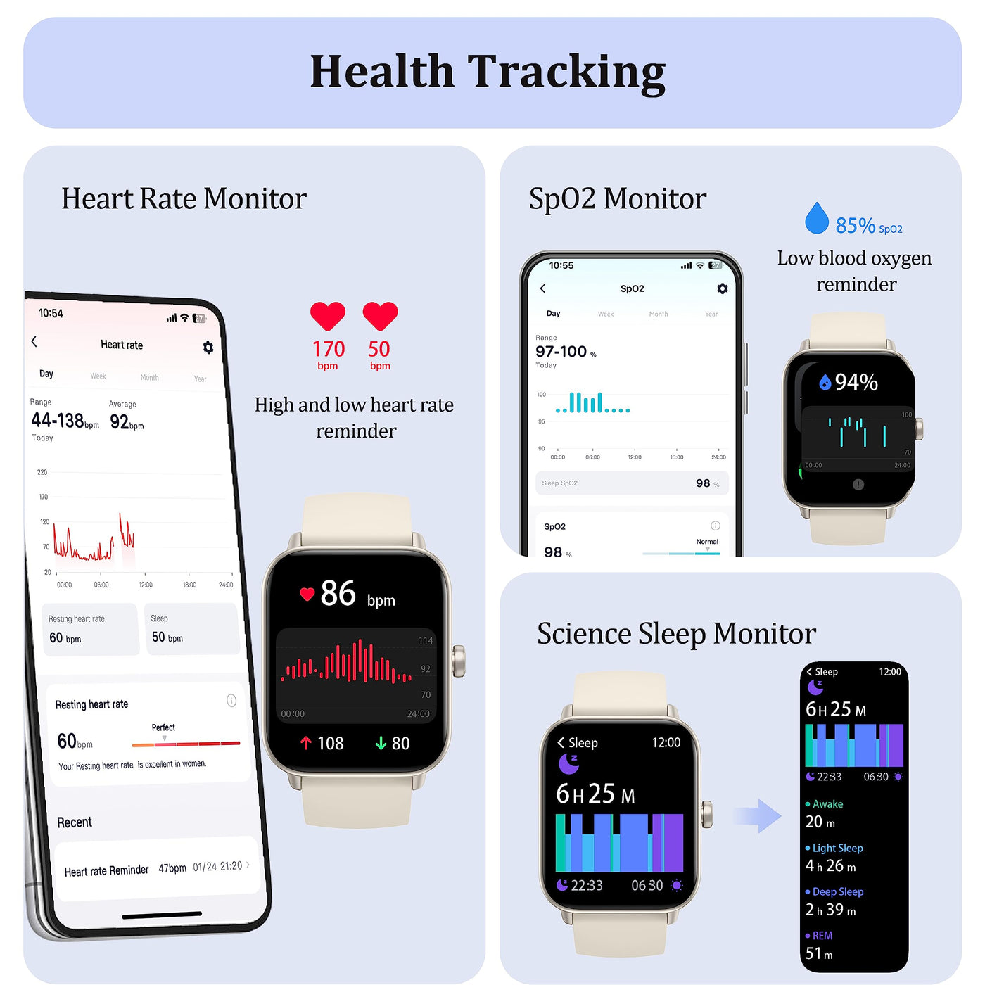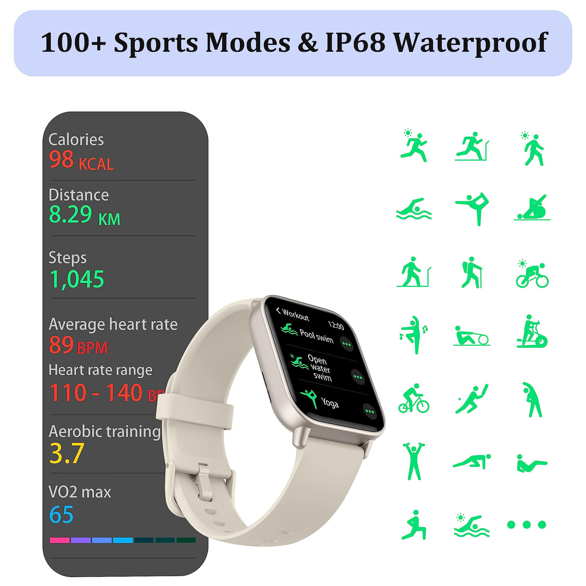 Kalinco Smart Watch For Women Men (Answer/Make Call), Alexa Built In, 1.8'' Fitness Tracker Watch With Heart Rate/Spo2/Stress/Sl