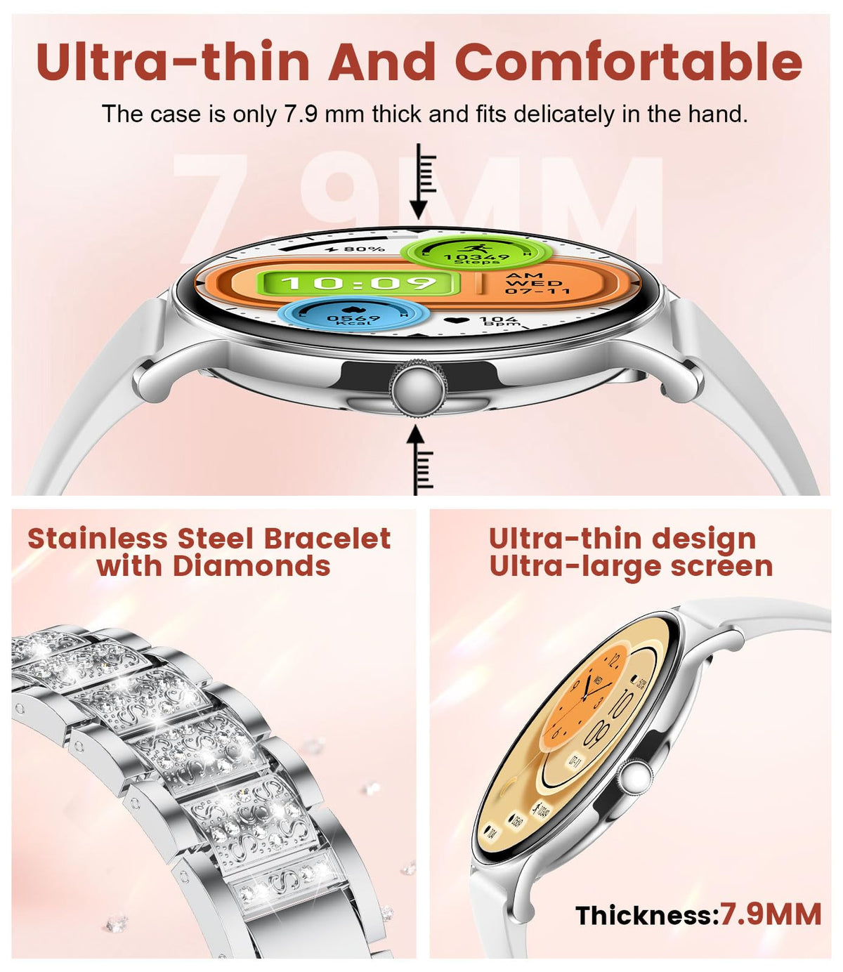 Lige Smart Watch For Women(2 Bands), Ultra-Thin 1.43 '' Hd Amoled Smartwatch For Android Ios,Fitness Tracker With 120+ Sport Mod