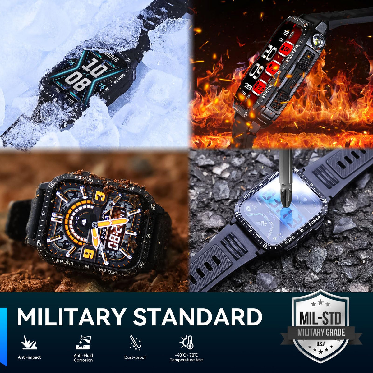 Military Smart Watch For Men With Led Flashlight Watch 2.0'' Big Screen Tactical Smartwatch 430Mah Big Battery Fitness Tracker W