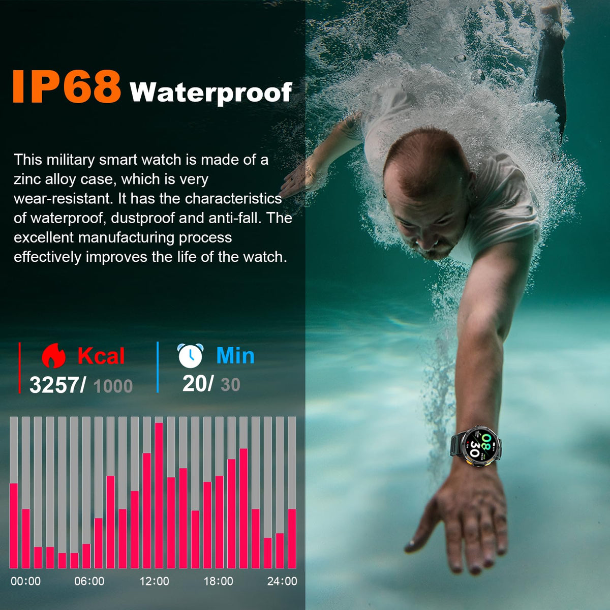 Q: What is the waterproof rating of the Tiwain smartwatch?A: The Tiwain smartwatch has an IP68 waterproof rating, which means it can withstand rain and sweat, but it is not recommended for swimming or using in saunas.