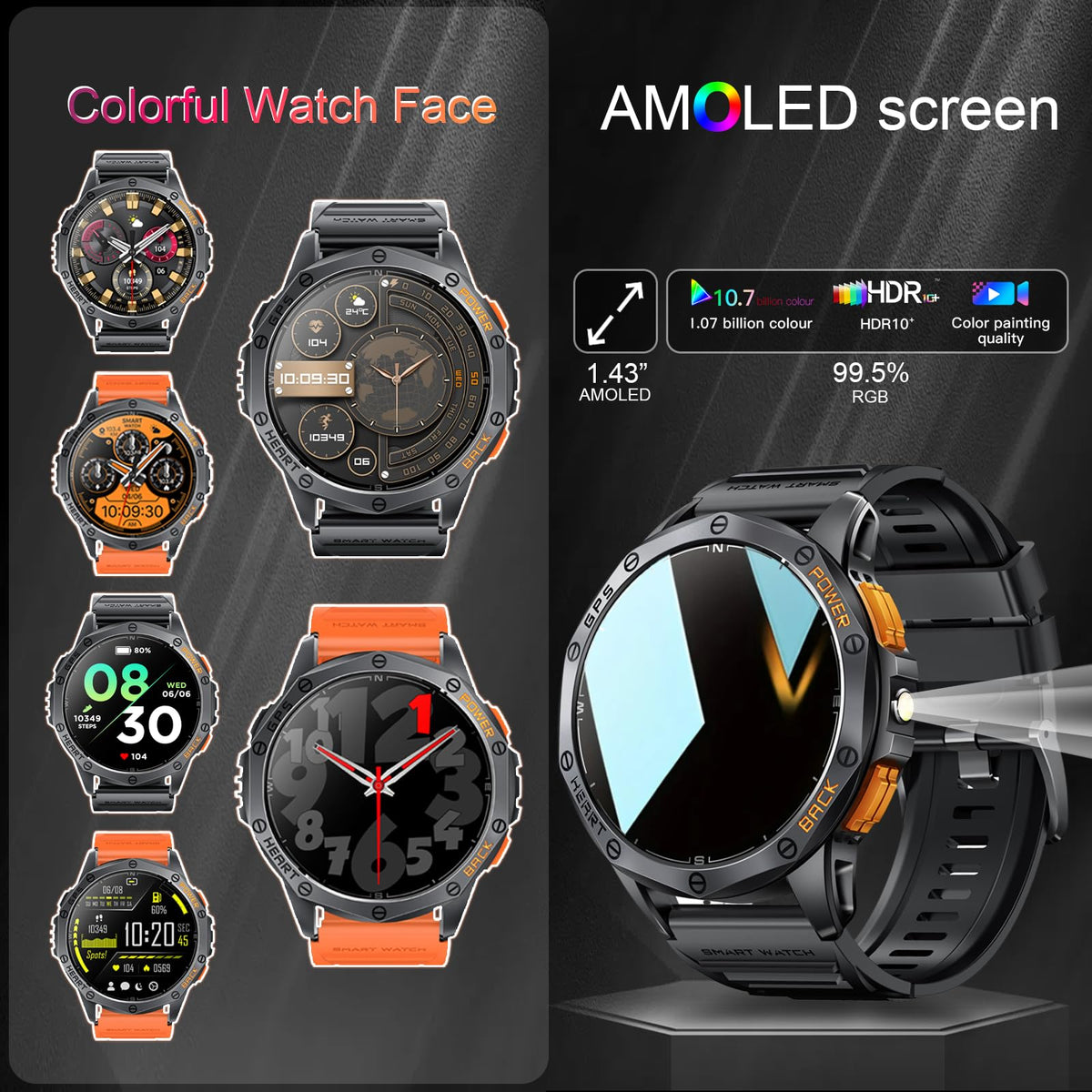 Tiwain 2025 New Military Smart Watch For Men With Flashlight, Tiwain Military Smart Watch Built-In Gps, 170+ Sport Modes For Men With Flashlight, For Android Phones And Iphone, Smartwatch With 1.43'' Amoled Screen, 530Mah Answer/Make Calls Bluetooth Calorie,1.43'' Amoled Full Big Touch Screen With Text And Call For Android Ios Phones Tiwain Smart Watch Focuses On The Development And Design Of Fitness Smart Watches, Always From The Perspective Of Customers. The Watch Has A Fashionable Appearance And Can Be Used In Extreme Environments With High-Strength Case And Glass Materials. High Performance Motion Optical Sensor, More Accurate Measurement Data. Resin Strap: Elastic Resin, Light, Soft, Comfortable And Flexible, Suitable For Daily Life And Various Sports Occasions.