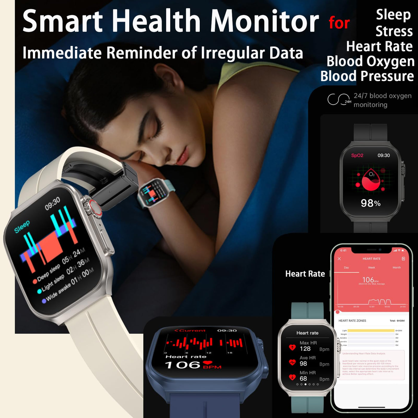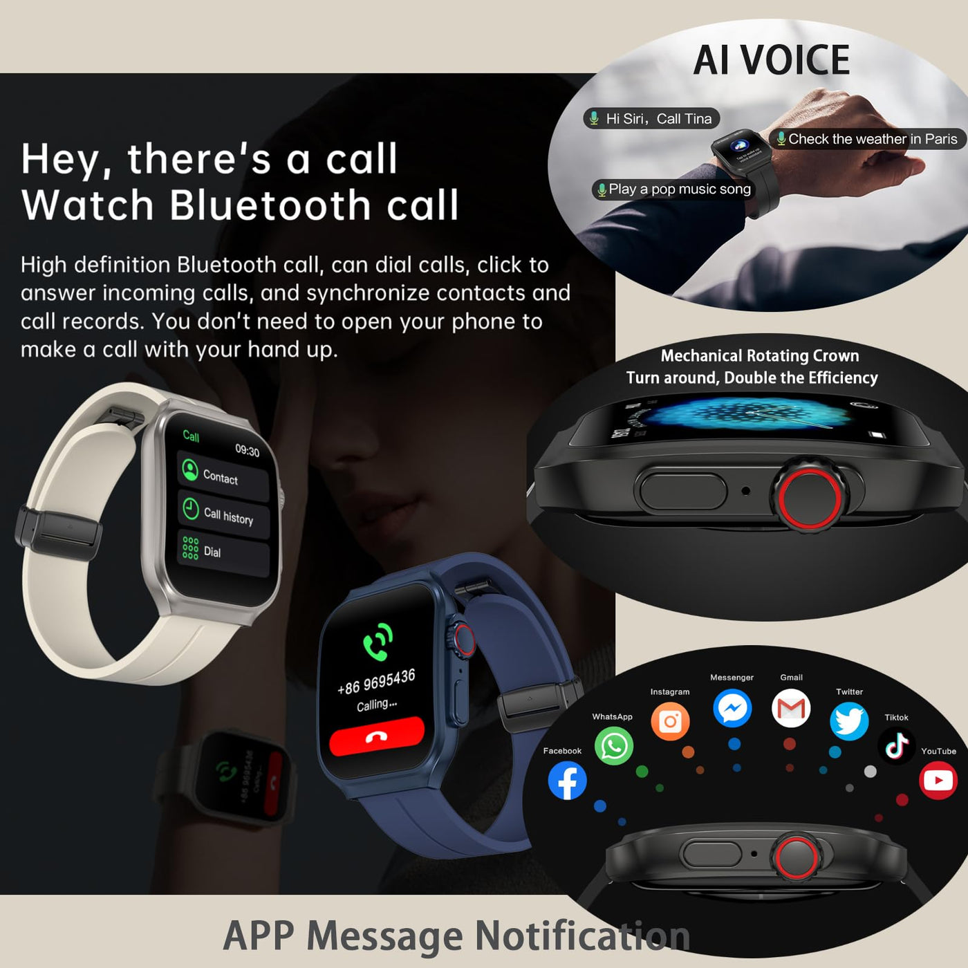 Multi-Functional Smart Watch With 1.96 '' Hd Extra-Large Full Touch Amoled Curved Screen,410*502 High Resolution And High Refresh Rate,Bluetooth 5.3 Making/Answering Phone Calls, Full Touch Screen, Ai Voice Assistant, Health Monitoring (Heart Rate, Blood Oxygen,Blood Pressure,Stress, Female Menstrual Period Prediction,Sleep),Step Counting, Alarm Clock, Sedentary Reminder, Remote Control Photography, Music Control, Wrist Flicking And Screen Brightening, Weather, Fitness Tracker, 120+ Sports Modes, Magnetic Charging, App Notifications Reminder(Sms, Wechat, Facebook, Twitter, Instagram, Whatsapp,Tiktok,Youtube, Etc), Ip67 Water Resistant, Long Battery Life,3D Flexible Surface Design,5 Menu Styles,150+ Online Cool Watch Faces (Including Dynamic, Exercise,Business,Machinery, Simple, Illustration) + Diy Background, For Ios/Android Mobile Phone Users,Smartwatch For Men And Women,Adults,Teen Boys And Girls Smart Watch, Reloj Inteligente Para Mujer,Reloj Inteligente Para Hombre