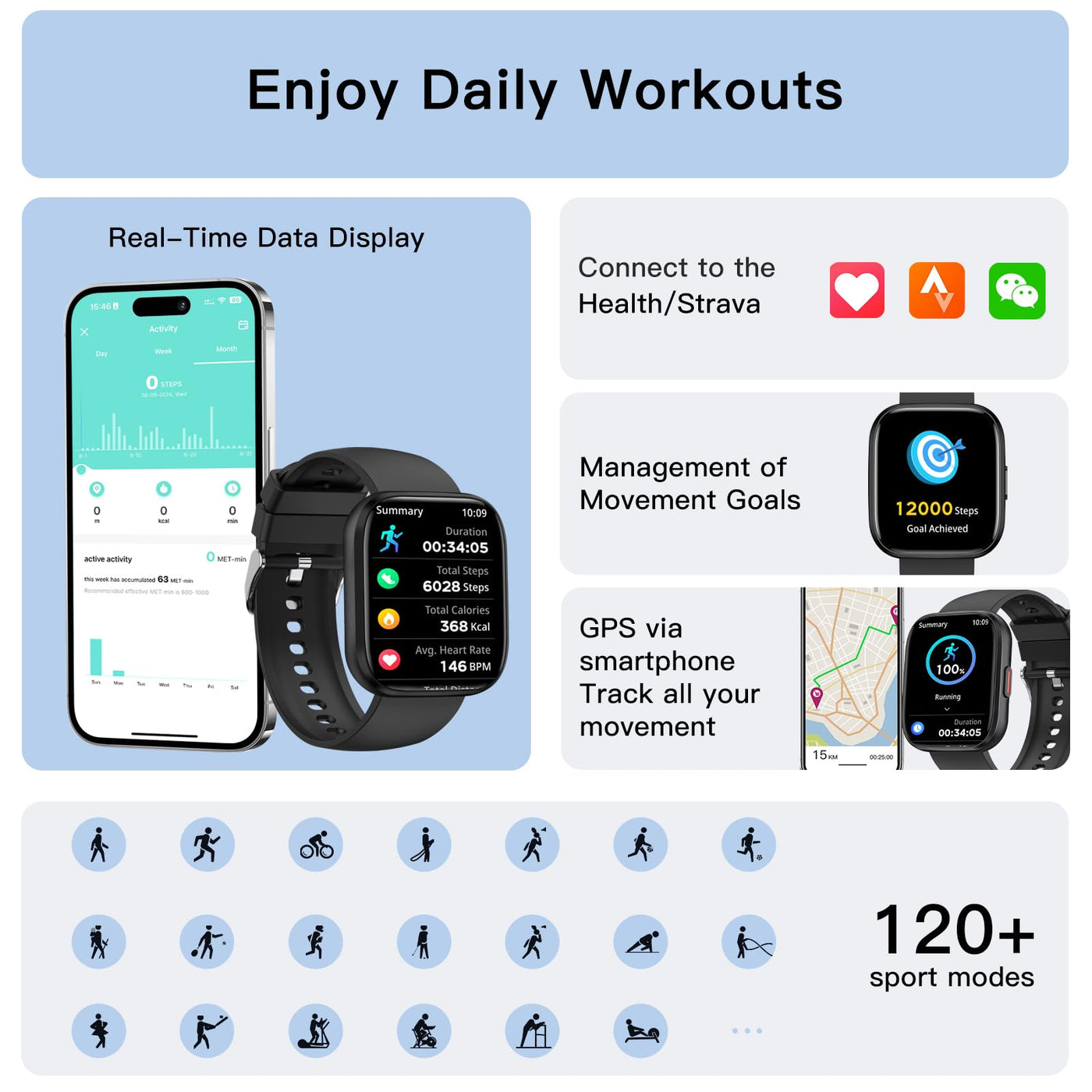 Paukila Smart Watches For Men Answer/Make Calls, 1.85 ' ' Fitness Watch With Heart Rate/Sleep Tracker, Activity Tracker, Pedomet
