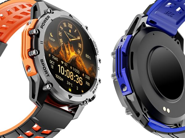 Engineered For Men Who Demand Resilience, This Military Smart Watch Combines Tactical Durability With Cutting-Edge Tech. The Smart Watches For Men Feature A 500Mah Ultra-Long Battery And A Forged Titanium Case-Ideal For Outdoor Missions Or Urban Challenges. Switch Styles Effortlessly With Dual Quick-Swap Strap Kits (Black/Orange For High-Visibility Trails; Black/Navy For Stealthy Professionalism). As A Smart Watch Compatible With Iphone And Android Smart Watch, It Tracks Heart Rate, Blood Oxygen, And Sleep, Or Stay Connected With Call/Text Alerts. Built For Versatility, This Smart Watch For Android Phones And Ios Users Adapts To Gym Sessions, Boardrooms, Or Mountain Summits. For Tech-Driven Adventurer, Its The Hybrid Of Military Smart Watches For Men And Modern Wearables.