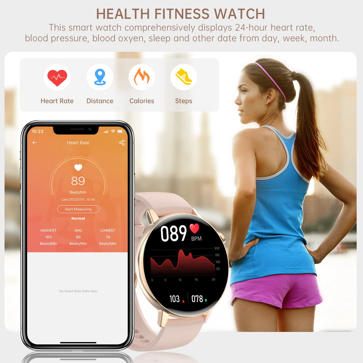 Smart Watches For Women- Bluetooth Call(Answer/Make Calls) Elegant Smart Watch Rosegold( 3 Straps), Fitness Tracker With Heart Rate / Sleep Monitor/ 20 Sports Modes, Ip67 Waterproof For Android/Iphone Compatible