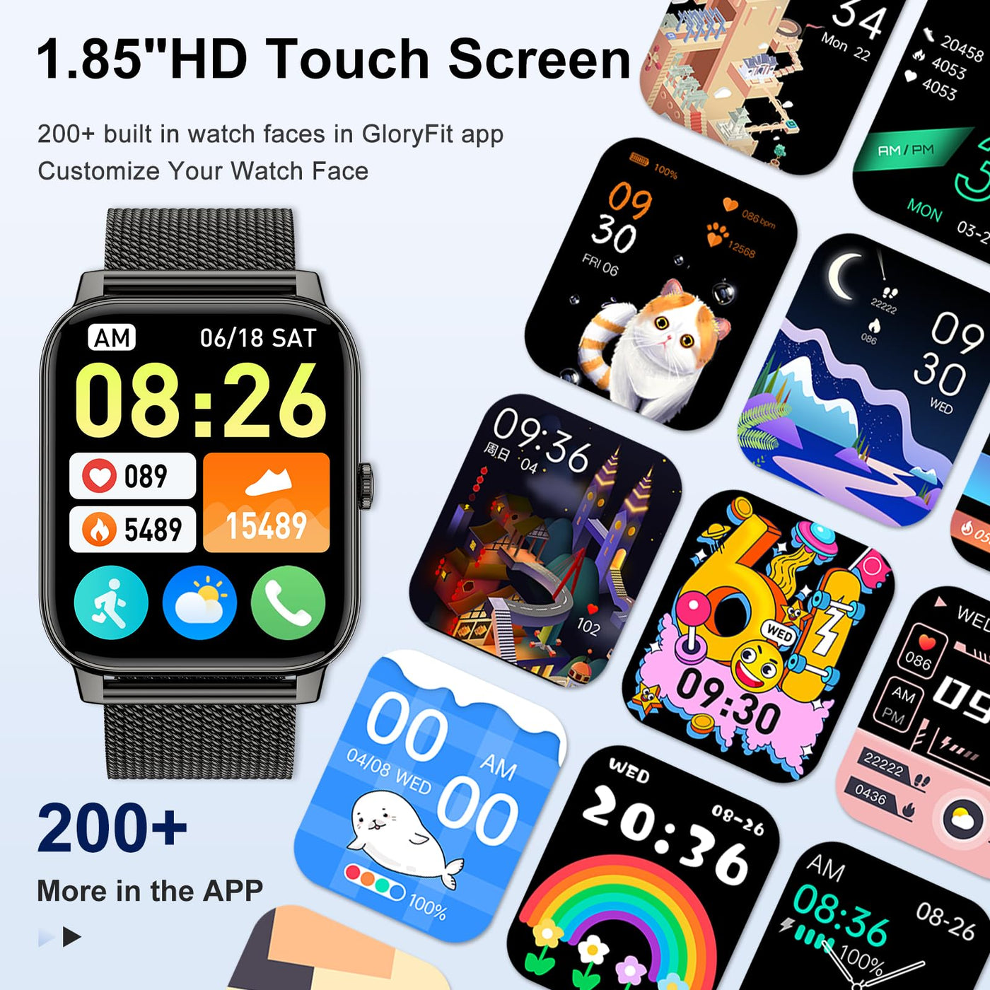 Fitness Smart Watches For Women Men (Answer/Make Call), Waterproof Smart Watch With Blood Oxygen Spo2 Heart Rate Sleep Tracker, Sport Running Watches For Women Men Features: 1. Stylish And Simple Appearance, 1.85'' Hd Full Touch Screen. Easy Control With The Sensitive Touch Screen.Watch Screen Will Light Up Every Time You Raise Your Hand. 2. Bluetooth Call Smartwatch. The Microphone Is Sharp Crisp, Hear Conversations On Your Phone Without Any Distortion. 3. Music Playback And Control, Remote Photography 4. Step Tracker Watch: Display Steps, Calorie, Distance, Heart Rate. 5. 112 Multi-Sport Modes (Walking, Running, Cycling, Basketball,Et.) 6. Heart Rate/Blood Oxygen Monitor Watch:24 Hours Continuous Monitoring. 7. Sleep Monitor Watch: Automatically Monitor And Analyze Sleep Quality During Night. 8. Smart Reminder For Information (Can Not Reply It) 9. Brightness Adjustment, Weather, Find The Phone, Find Watch, Alarm, Timer, Stopwatch, Sedentary Reminder