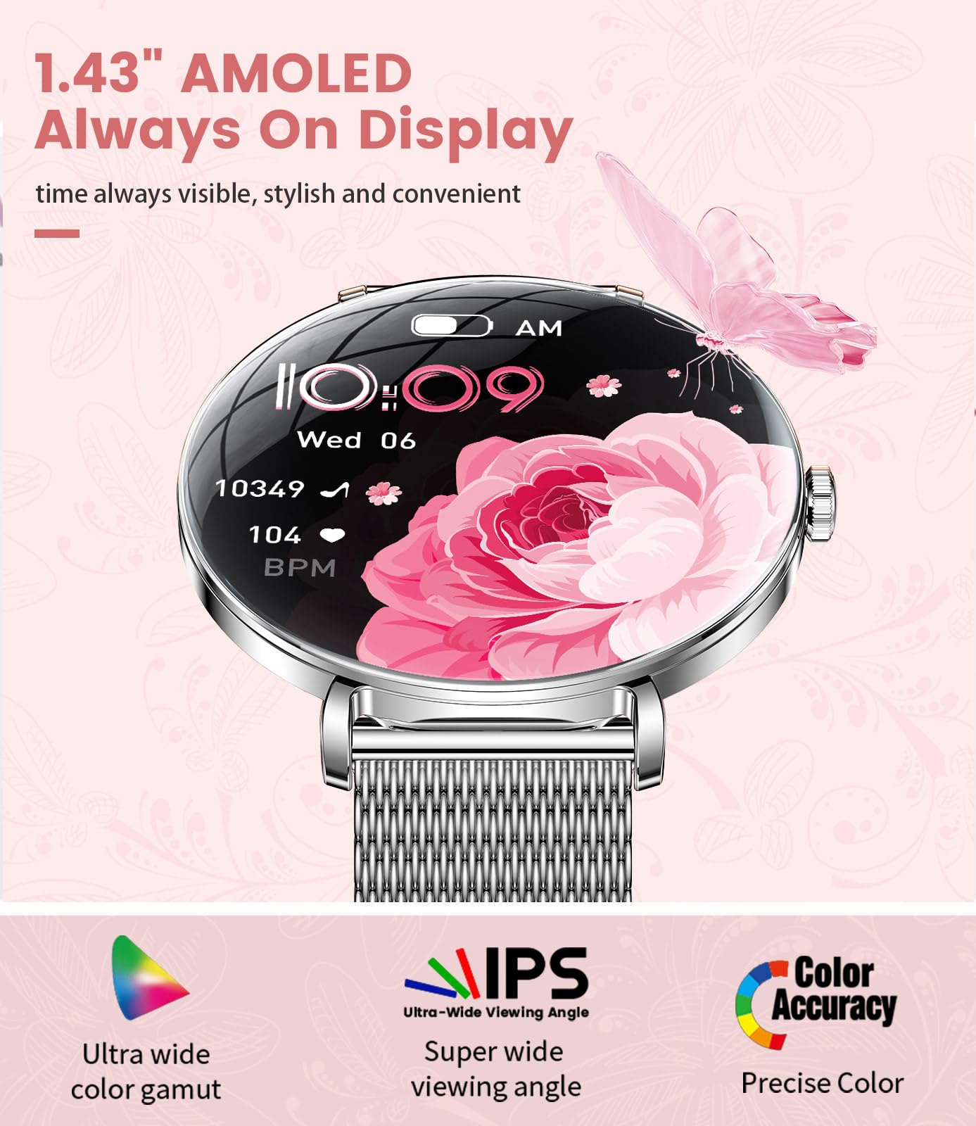 Sunkta Smart Watch For Women(Buletooth Calling), 1.43 ' ' Amoled Smart Watches, Ladies Fitness Watch With 100+ Sport, Ip68 Water