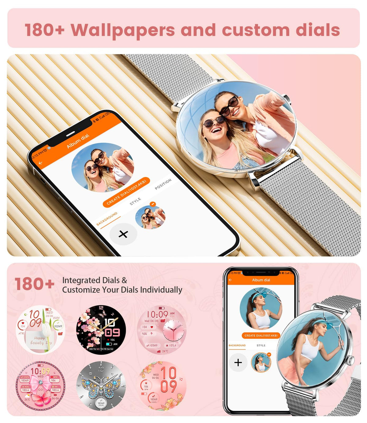 The Sunkta Smart Watch For Women Is Designed For Men. This Waterproof Watches For Women Is Made Of High-Strength Metal, Durable And Able To Withstand Extreme Outdoor Activity. The Fitness Tracker Watch Is 5Atm Waterproof, Even At A Depth Of 50 Meters Underwater, Sports Watch Can Work Normally, Fearless Of Underwater Adventure. 1.43 ' ' Display Screen Smartwatch With A Resolution Of Up To 466*466 Pixels. The Amoled Smart Watch Has Built-In 260 Mah Large Long Battery Life. Sunkta Fv17 Android Smart Watches For Women Makes It Easy To Answer Calling, Messages Notification, And Maintain Real-Time Contact With The Outside World. The Gold Watches For Women Powerful Communication Function Allows You To Maintain Efficient Communication Anytime Without Worrying About Missing Any Important Information. The Smart Watch For Iphone Compatible Has 100 Sports Modes, Whether You Love Running, Cycling, Swimming, Yoga, Or Other Sports, You Can Find The Right Mode. The Sports Watches For Women Is Also Calorie Counter Watch, Step Counter For Walking, Heart Rate Monitor, Blood Pressure Smart Watch, Sleep Monitor Devices For Adults, And Waterproof Smart Watch For Women With Speed And Distance, Real-Time Recording Of Your Every Sports And Fitness. This Health Tracker Watch Can Track Your Activities All Day Long. Ladies Smart Watches After Connecting Via Bluetooth, You Can Answer Calling, View Message Notifications On The Bluetooth Watch For Iphone. Round Smart Watch For Women Built In Music Control Function Allows You To Easily Switch Songs, Adjust Volume, And Enjoy The Fun Of Music While Exercising Or Commuting. This Women Smart Watch Supports Intelligent Voice Assistant, Making It Easy To Operate. The Luxium Smartwatch For Men Remote Camera Function Allows You To Control Phone Camera Through Watch And Capture Every Moment.
