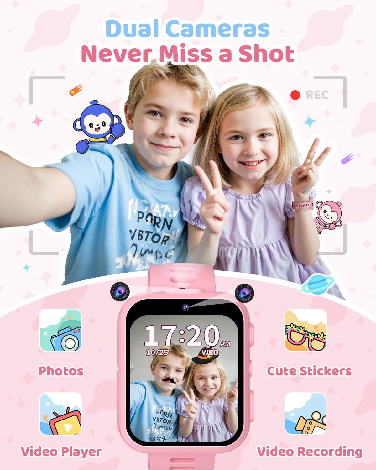 Tictiky Smart Watch For Kids, Kids Watch With 2 Cameras, 30 Puzzle Games, Learning Cards, Video Music Player, Audiobooks, Pedome