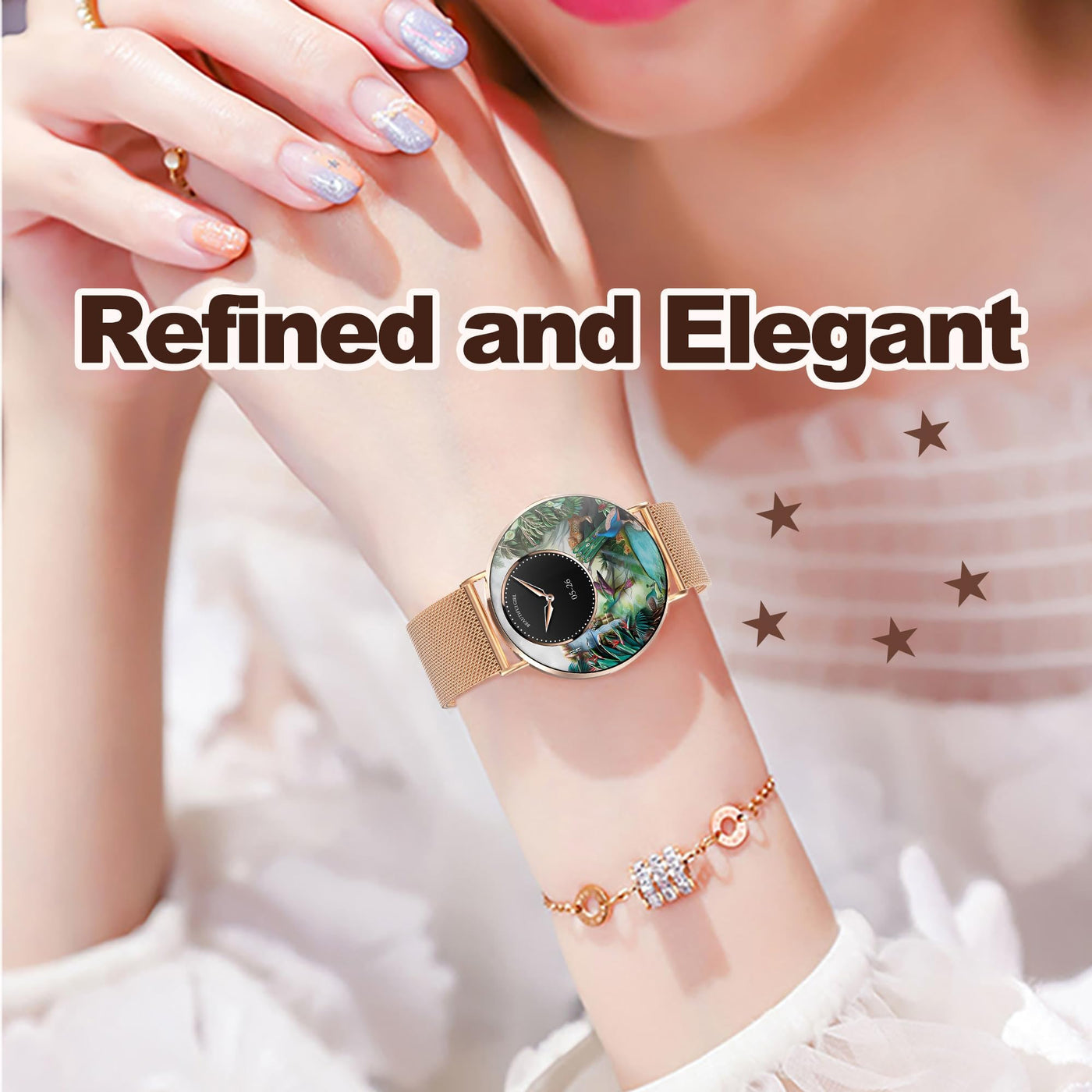 Discover The Ultimate In Luxury And Comfort: As A Women 'S Smartwatch, It Is The Only One With An All-Metal Body, Ensuring Both Durability And A Surprisingly Lightweight Feel. Measuring Just 6.9 Mm (0.27 Inches) In Thickness And Weighing Only 16.8 Grams (0.59 Ounces), You 'Ll Barely Notice It On Your Wrist. With A Diameter Of 41 Mm (16Inches), It Is Approximately Twice The Size Of A U.S. Penny. Elegant And Versatile Women 'S Watch: The Elegant Genuine Leather Strap Paired With A Full-Metal Casing Makes It As Suitable For Work And Business Occasions As For Ballroom Events. The Comfortable Silicone Strap Is Perfect For Relaxing At Home Or Working Out. It Is The Ideal Gift Choice For Christmas, Valentine 'S Day, Thanksgiving, And Birthdays. Experience The Ultimate With The Most Powerful Configuration: Featuring A 1.32 '' Amoled Display With A Resolution Of 466X466 And A High-End Main Chip, It Delivers A Smooth And Fluid Touch Control Experience With Crisp Images And Vibrant Colors. Plus, With Just One Hour Of Charging, You Can Enjoy Up To 7 Days Of Worry-Free Usage, Eliminating The Hassle Of Daily Charging. Android/Iphone Compatible Health Care Smartwatch: Compatible With Most Iphones Samsung And Android Phones, Powered By A Cutting-Edge Digital Chip.Advanced Sensors Monitor Heart Rate, Blood Oxygen, Stress, Mood,Menstrual Cycles, And Sleep Quality, With Data Syncing To Your Phone For Analysis And Lifestyle Adjustments. Fitness Tracker Watch With Over 150 Sports Modes: This Fitness Watch Automatically Tracks Your Daily Steps, Distance, And Calories Burned. With Over 150 Sports Modes To Choose From, Including Running, Hiking, Badminton, Basketball, Mountain Climbing, And Yoga, It Caters To Both Outdoor And Indoor Enthusiasts. Designed With Women In Mind, It Features A 3D Dynamic Ui And A Variety Of Feminine Dynamic Watch Faces. Plus, With Over 200 Watch Face Styles To Select From, Or The Option To Upload Your Own Photos For Customization, It Adds A Touch Of Joy To Your Fitness Journey. Bluetooth Calling And Messaging Connection: With Bluetooth Connectivity, You Can Easily Make And Receive Calls Directly On Your Smartwatch Without Needing To Take Out Your Phone. It Also Alerts You To Messages And Notifications From Social Media Platforms Like Facebook, Whatsapp, And Twitter. This Way, You Won 'T Miss Any Important Calls Or Messages, Even If Your Phone Is In Your Bag. Please Note That You Cannot Edit Or Reply To Messages From The Smartwatch. Exceeds Expectations: Despite Its Slim And Lightweight Design, This Women 'S Smartwatch Packs All The Functionality You Need. It Features Ai Voice Control, Music Playback Control, Remote Camera Shutter, Weather Updates, Find My Phone, Always-On Display, Stopwatch, Timer, Calculator, World Clock, And Flashlight-Making Your Life More Convenient. We 'Re Committed To Delivering Not Only A High-Quality Product But Also Top-Notch Customer Service. If You Have Any Questions Or Suggestions About Our Smartwatch, Please Don 'T Hesitate To Reach Out To Us.