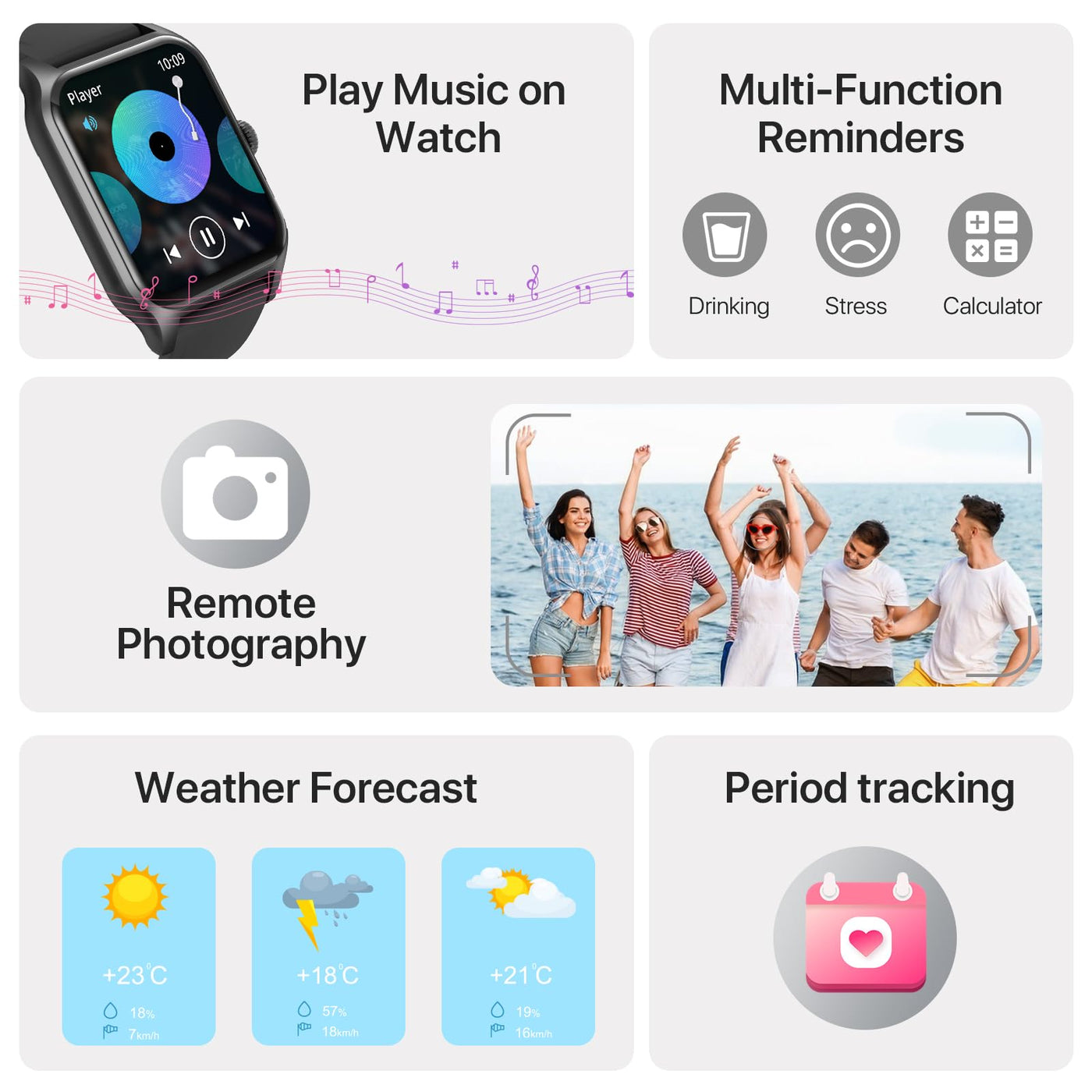 Walkerfit Smart Watch For Women, Waterproof Smartwatches Fitness Tracker With Blood Pressure Iphone Android Compatible, 1.4 Inch Round Gold