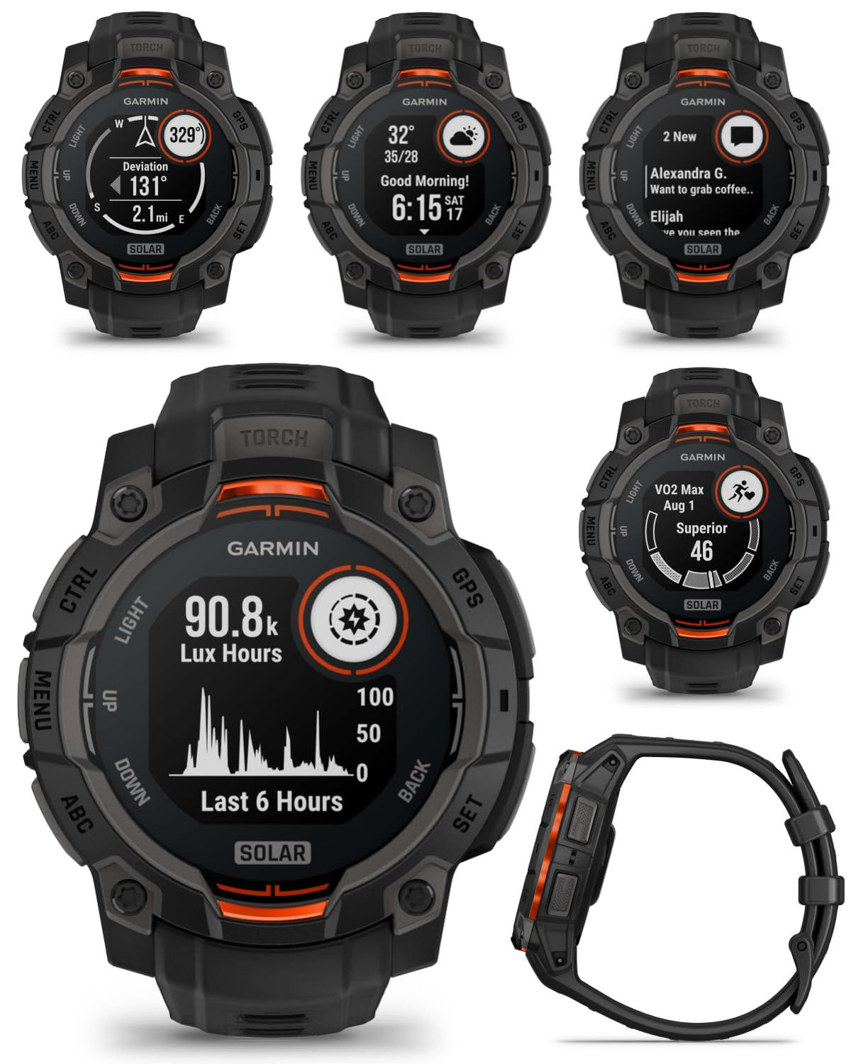 Instinct 3 Is The Rugged 45 Mm Gps Smartwatch With A 0.9Display, Built-In Flashlight And Unlimited Battery Life In Smartwatch Mode With Solar Charging (Assumes All-Day Wear With 3 Hours Per Day Outside In 50,000 Lux Conditions). With Bolted Construction, A Metal-Reinforced Bezel And Scratch-Resistant Lens, It Can Take On Your Toughest Adventures. It? Engineered To Mil-Std-810 Standards For Thermal And Shock Resistance And Is Also 10 Atm Water-Rated. To Keep You On Track, The Instinct 3 Smartwatch Includes A Built-In 3-Axis Compass And Barometric Altimeter. Plus, Multi-Band Gps With Satiq Technology Delivers Superior Positioning While Also Optimizing Battery Life. Its 24/7 Wellness Features Keep You Connected To Your Body With Heart Rate Tracking, Advanced Sleep Monitoring, Pulse Ox And More (This Is Not A Medical Device, And Data Presented Is Intended To Be A Close Estimation Of Metrics Tracked; Pulse Ox Not Available In All Countries). Instinct 3 Also Includes Garmin?Pay Contactless Payments (With A Supported Bank).