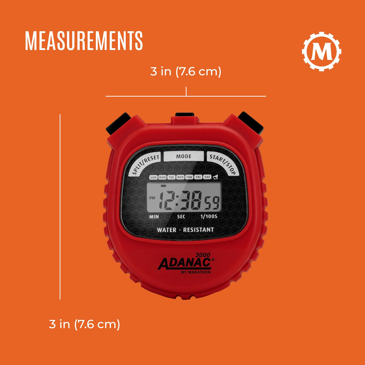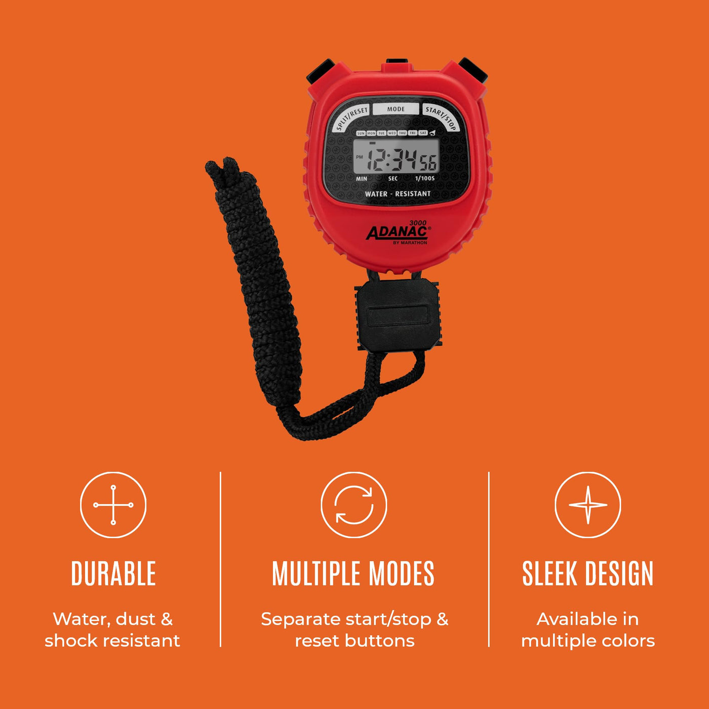 Marathon Adanac 3000 Digital Stopwatch Timer, Red High Precision Accuracy To 1/100Th Seconds Water, Dust & Shock Resistant