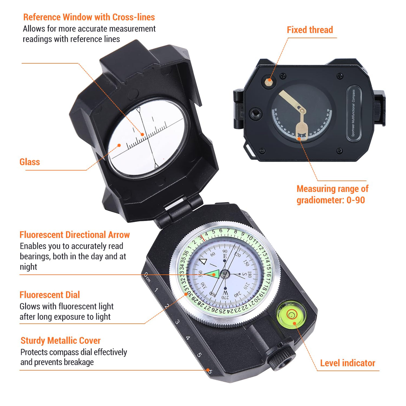 Sportneer Compass Survival Hiking Military Waterproof Lensatic Compass With Inclinometer For Camping Hunting