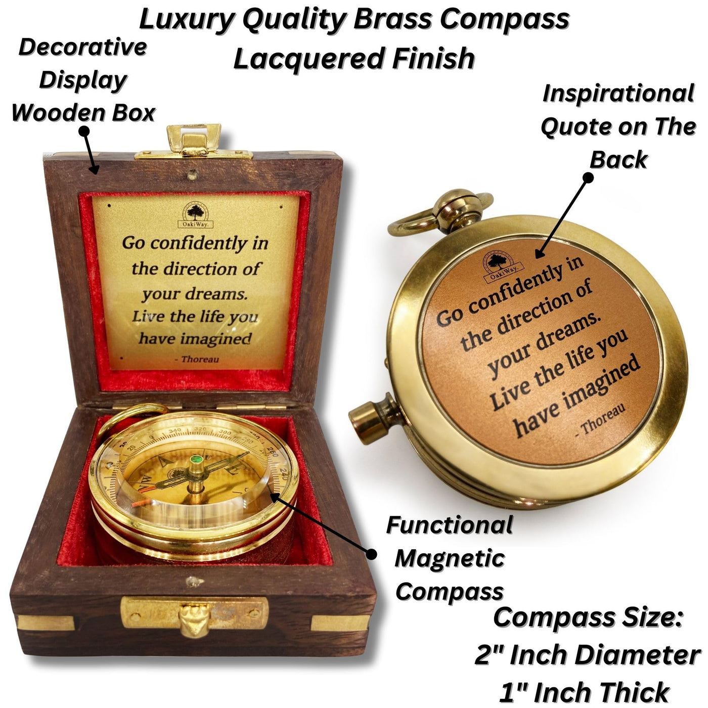 The Dream Chaser Compass In Wooden Box Graduation Gifts For Him, College, High School, Birthday Gifts For Men, Son, Husband