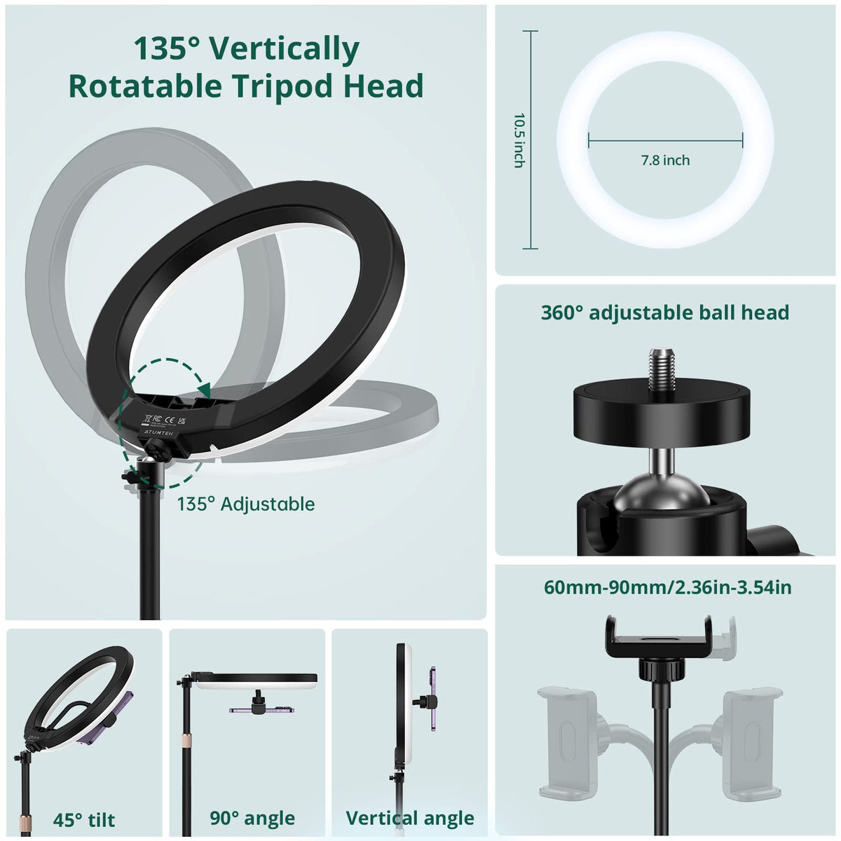 Capture Stunning Selfies And Create Professional-Quality Videos With The Atumtek 10 Desktop Ring Light Featuring 100 Led Beads With A High Color Rendering Index (Cri) Of =90, This Ring Light Ensures Improved Selfie Quality And Enhanced Lighting Effects